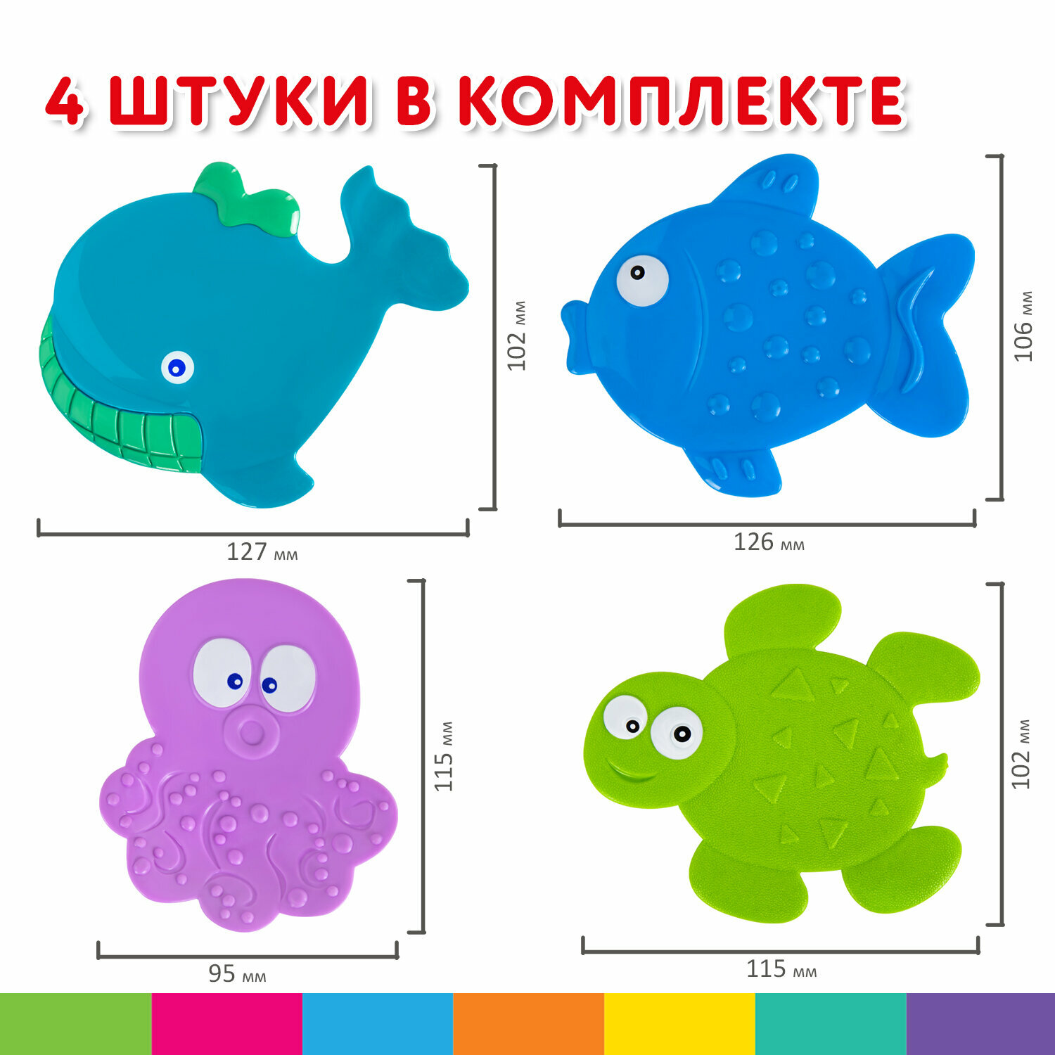 Купить Коврик в ванну противоскользящий, для ванной и душа детский набор 4 штуки, Ассорти, Brauberg Kids, 665185