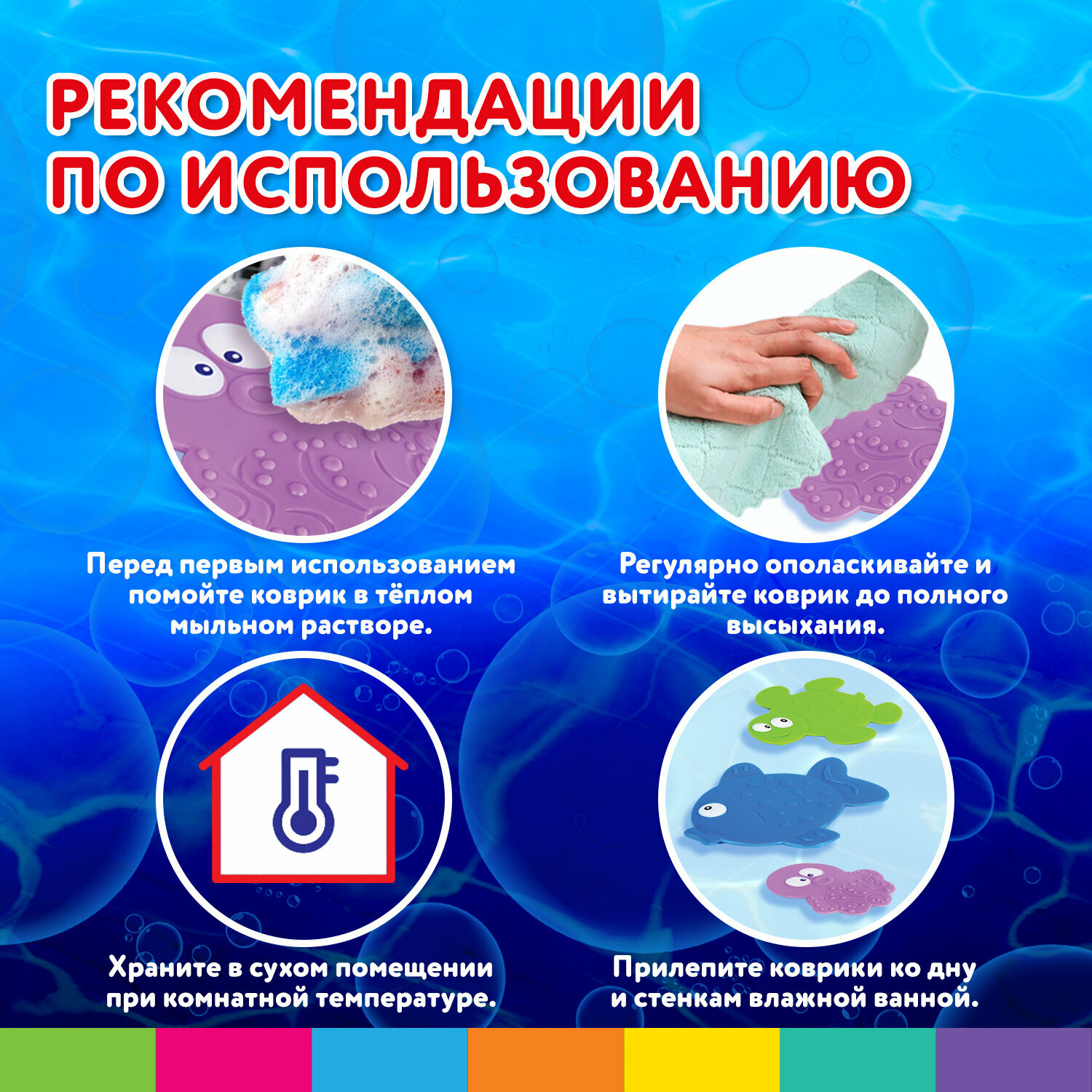 Коврик в ванну противоскользящий, для ванной и душа детский набор 4 штуки, Ассорти, Brauberg Kids, 665185 интересное: