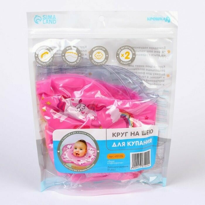Купить Круг детский на шею, для купания, Верю в единорогов, от 1 мес, двухкамерный, с погремушками, форма звезда