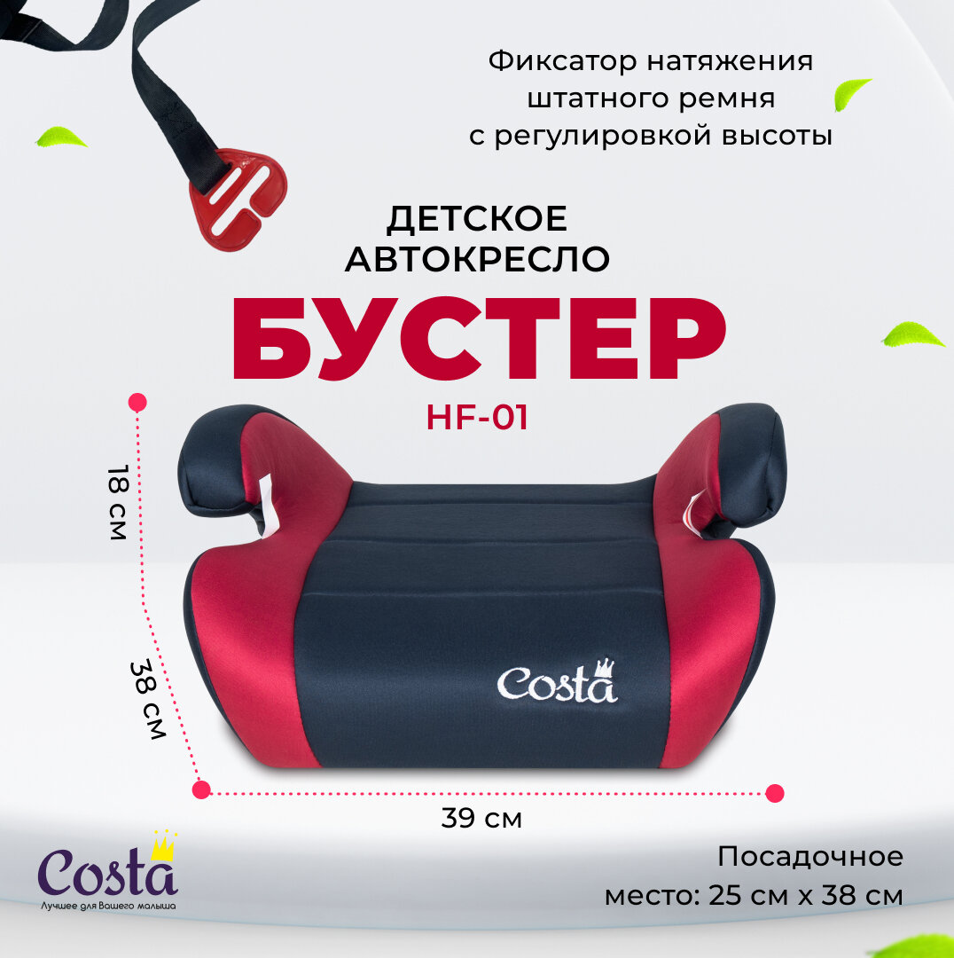 Купить Детское автокресло бустер Costa HF-01, группа 2 и 3, от 4 до 12 лет, вес от 15 до 36 кг, цвет красный