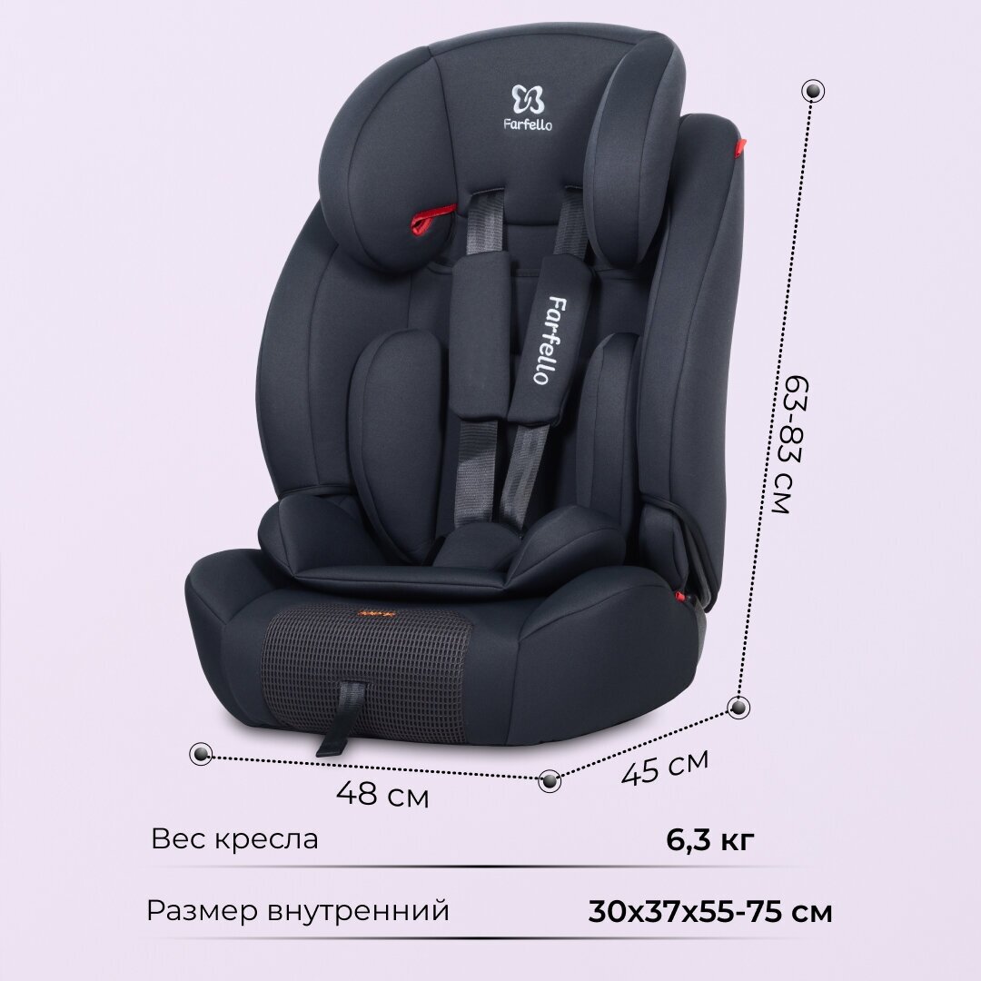 Автокресло детское Farfello YKO-921N, группа 1/2/3, от 9 до 36 кг, до 12 лет, цвет серый интересное: