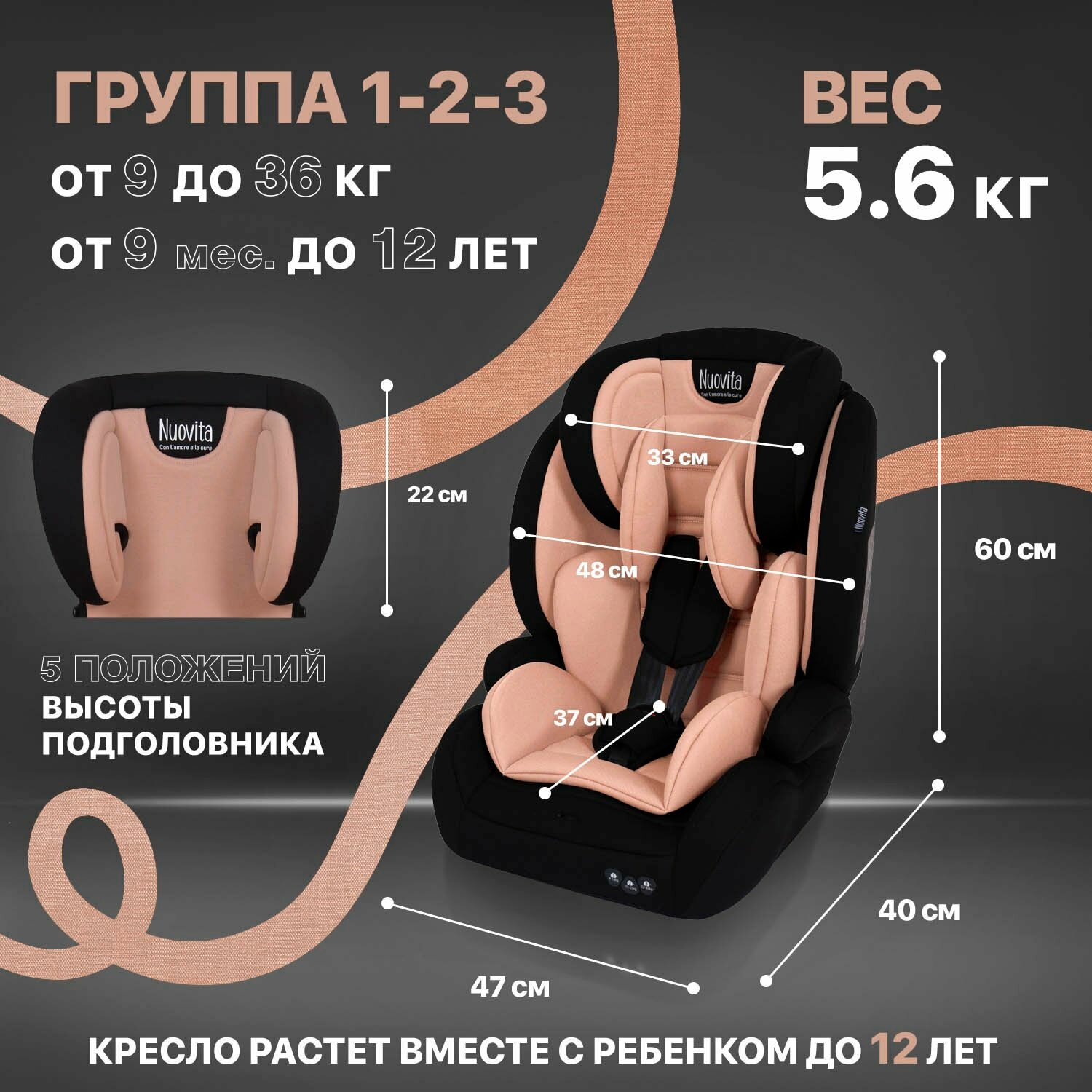 СохранитьАвтокресло детское Nuovita Maczione N123-1, группа 1/2/3, от 9 мес до 12 лет, весом от 9 до 36 кг/ трансформируется в бустер (Beige/Бежевый) интересное: