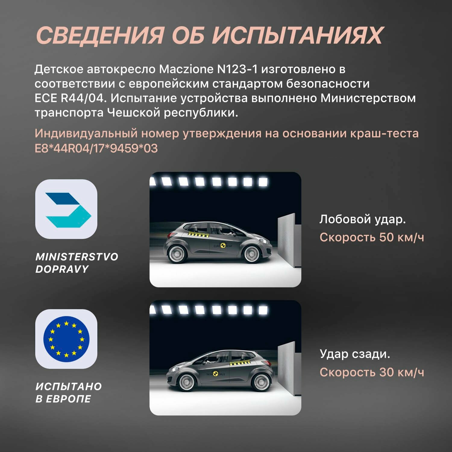 | Оценка краш-теста | ECE R44/04 |