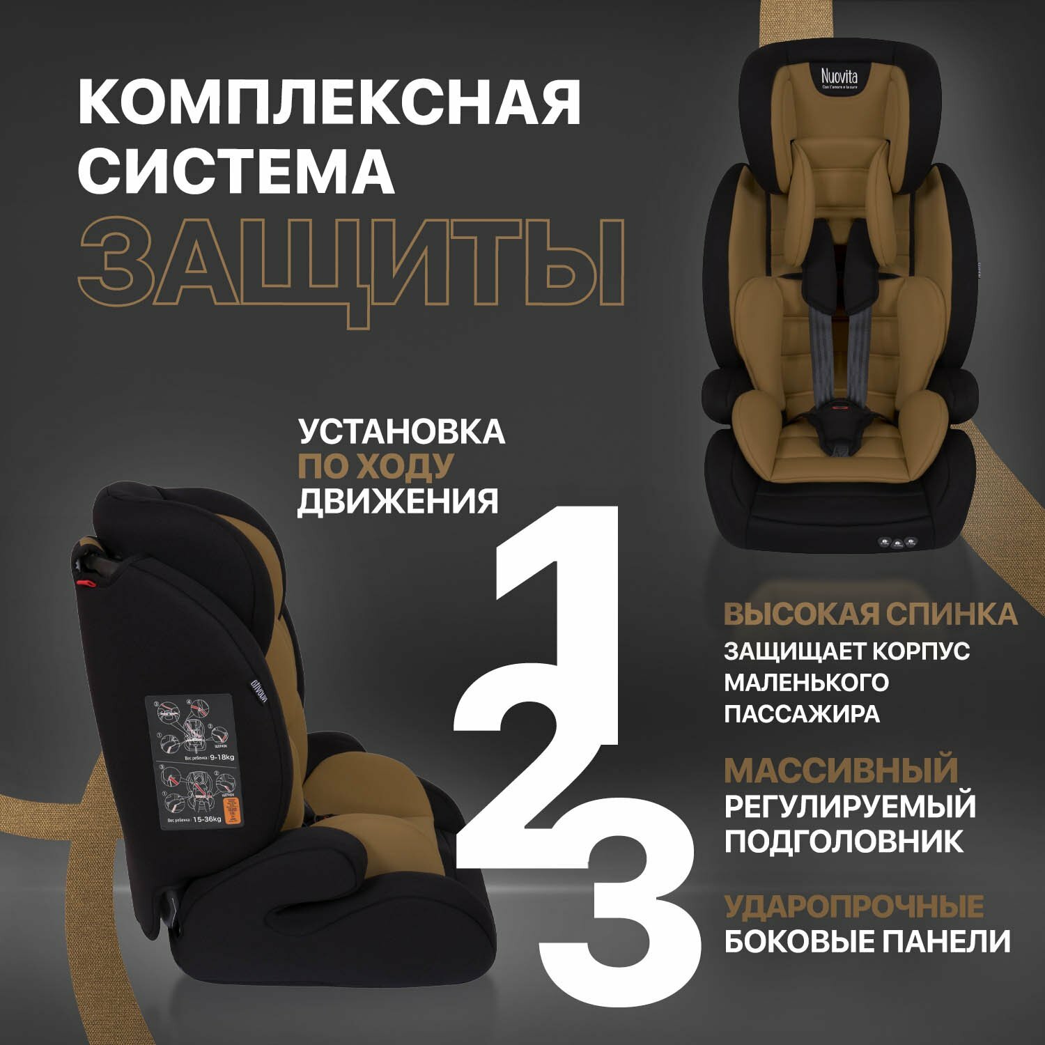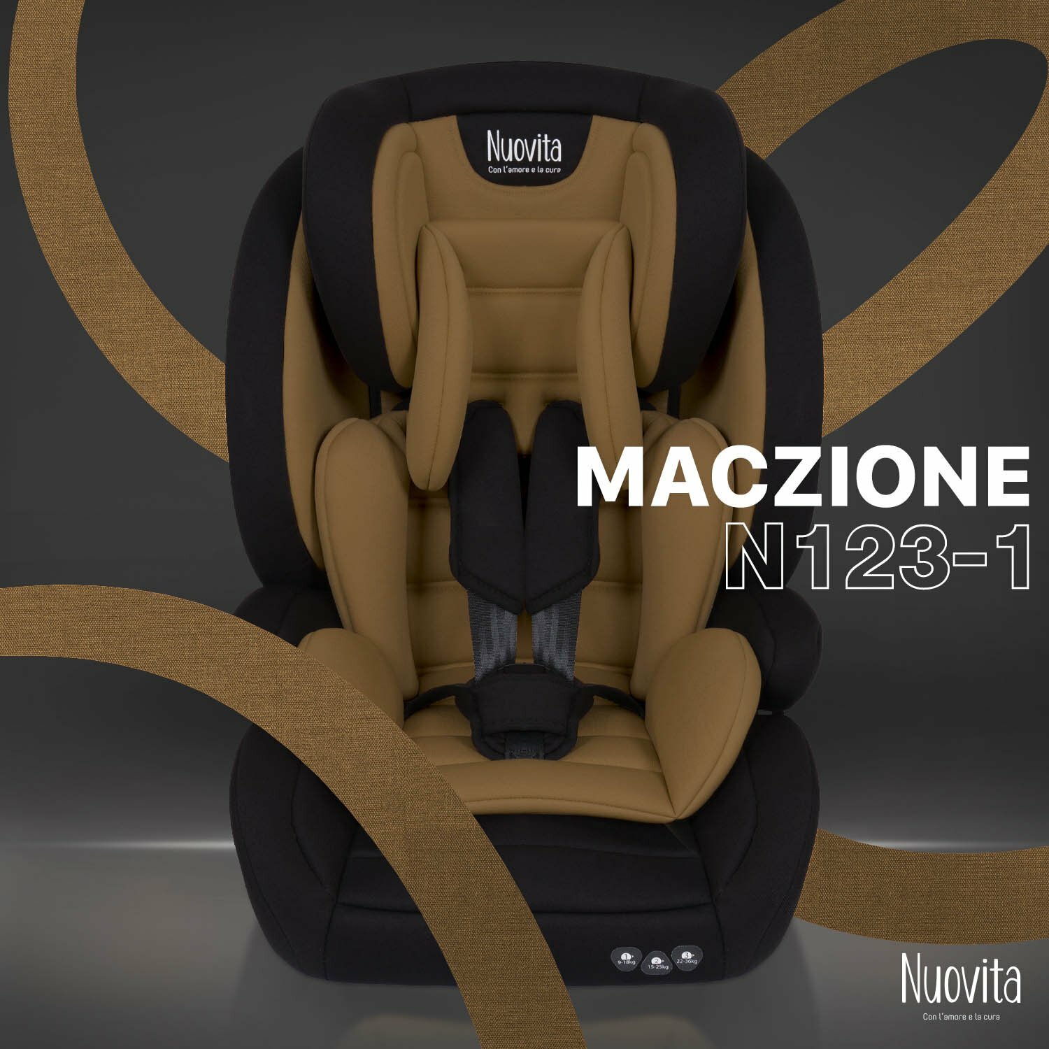 Купить Автокресло детское Nuovita Maczione N123-1, группа 1/2/3, от 9 мес до 12 лет, весом от 9 до 36 кг/ трансформируется в бустер (Caffe/Кофейный)