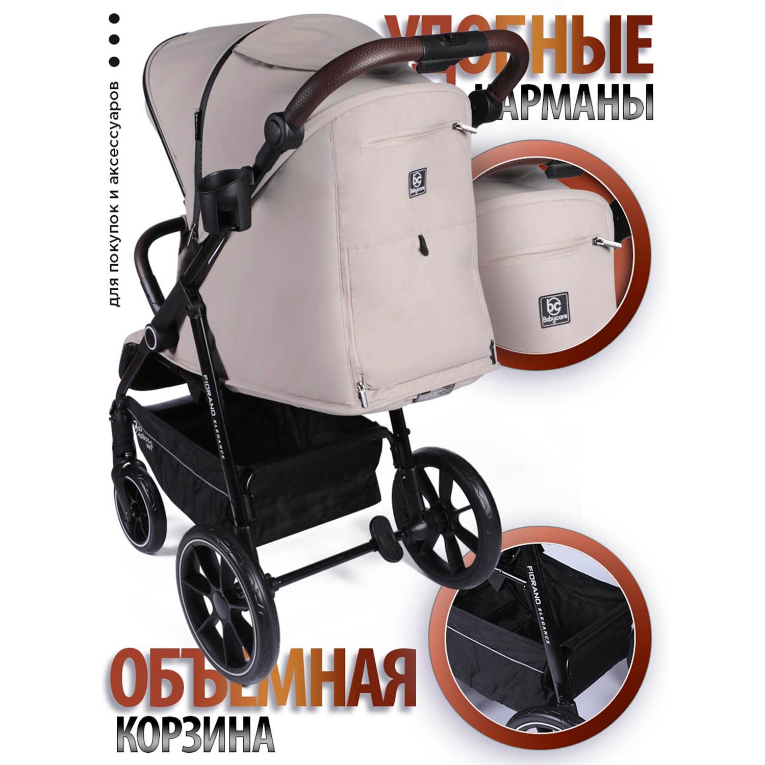 Коляска прогулочная всесезонная Fiorano с нагрузкой до 22 кг, бежевый интересное: