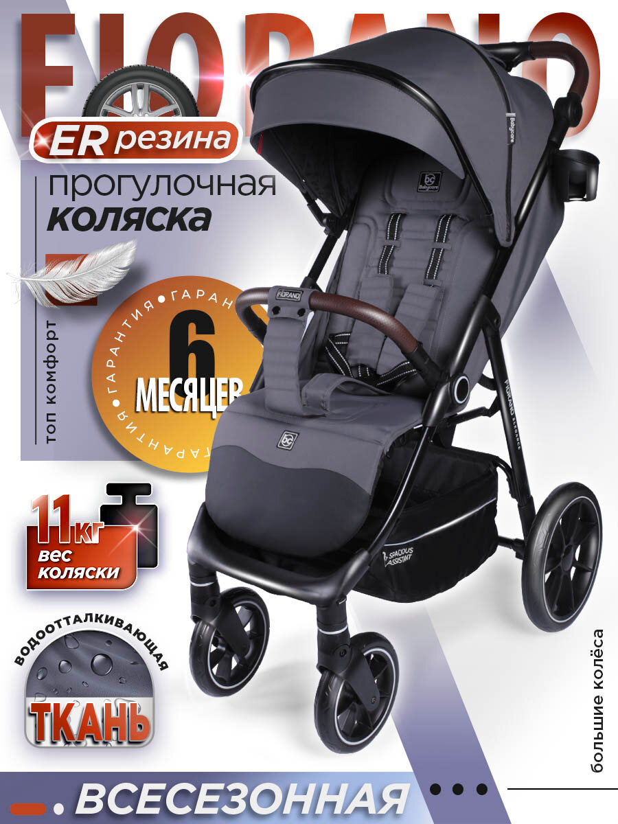 Коляска прогулочная всесезонная Fiorano с нагрузкой до 22 кг, темно-серый интересное: