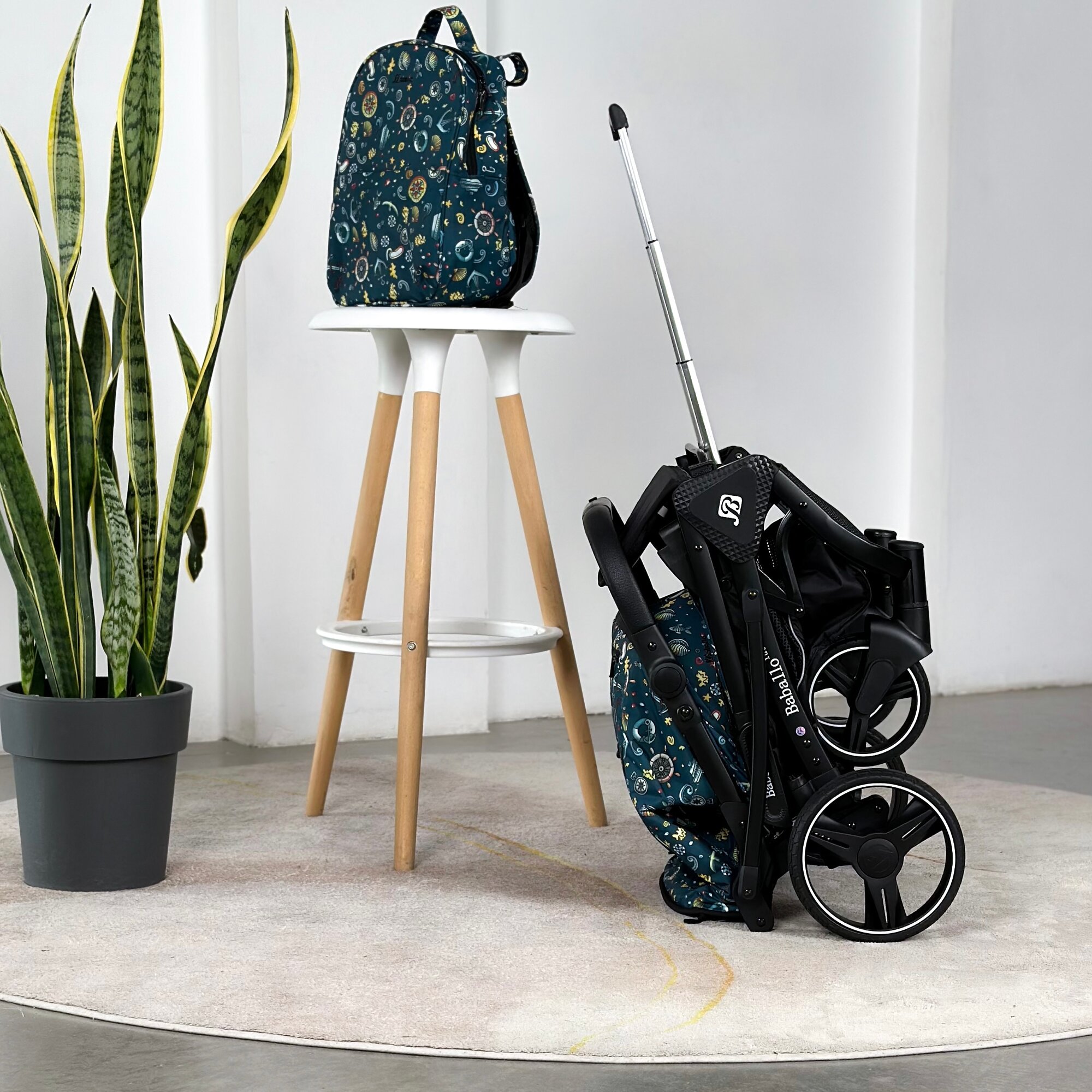 Коляска прогулочная Baballo 2024 ORIGINAL темно-синяя/черная рама + рюкзак (механическая регулировка спинки)