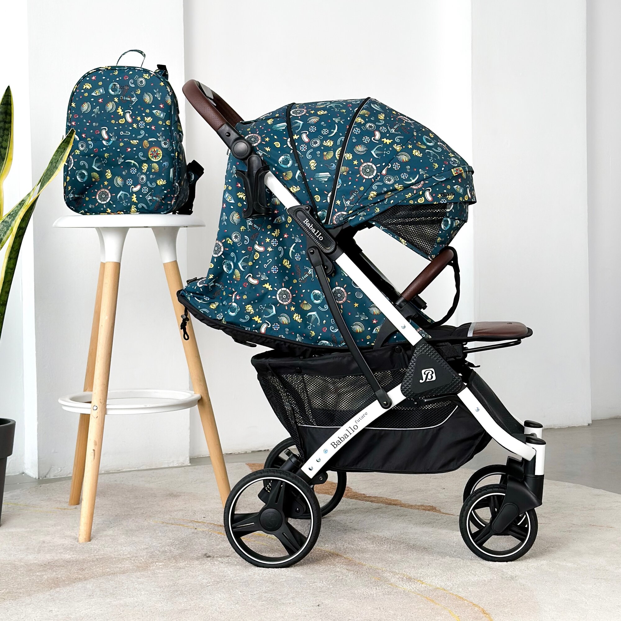 Купить Коляска прогулочная Baballo 2024 ORIGINAL океан/белая рама + рюкзак (механическая регулировка спинки)