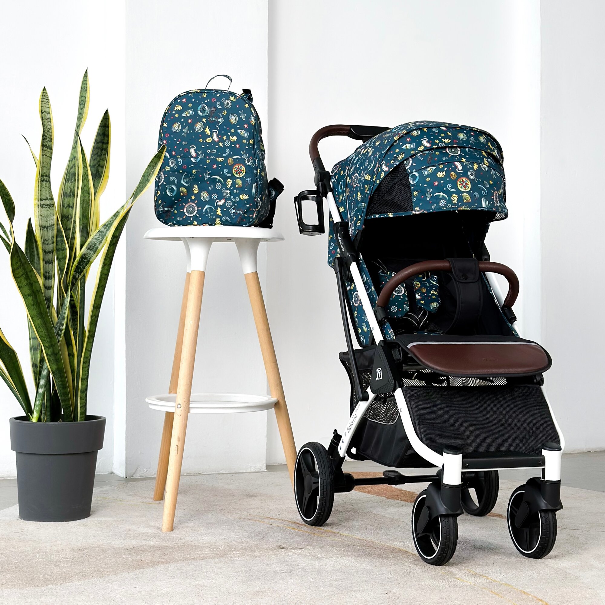 Коляска прогулочная Baballo ORIGINAL 2024 океан/черная рама + рюкзак (механическая регулировка спинки)