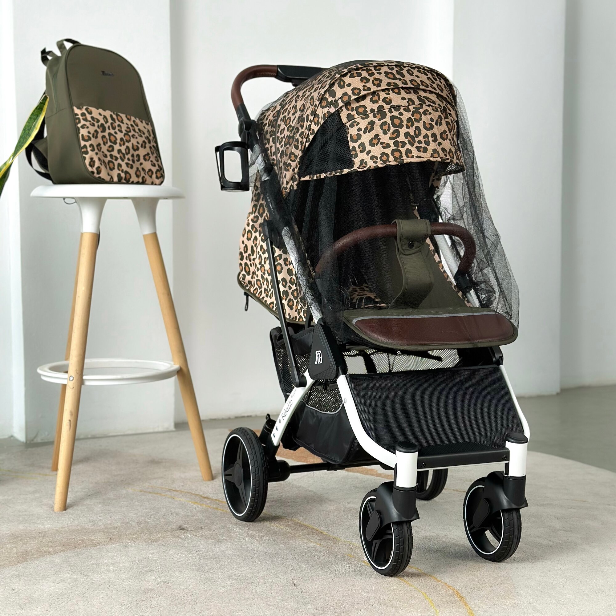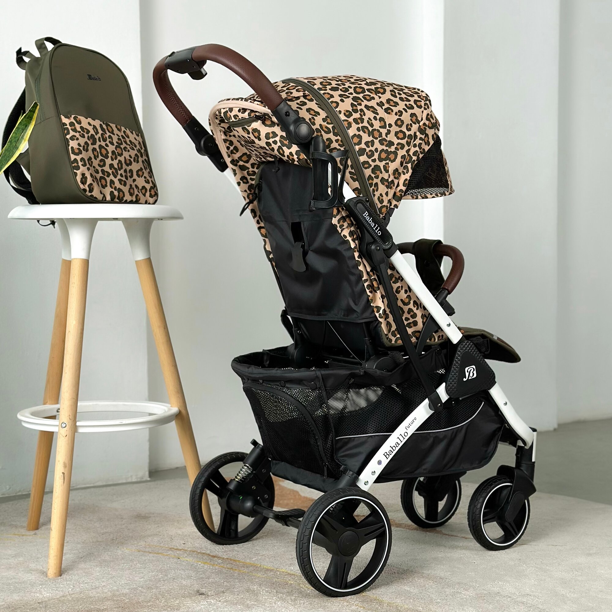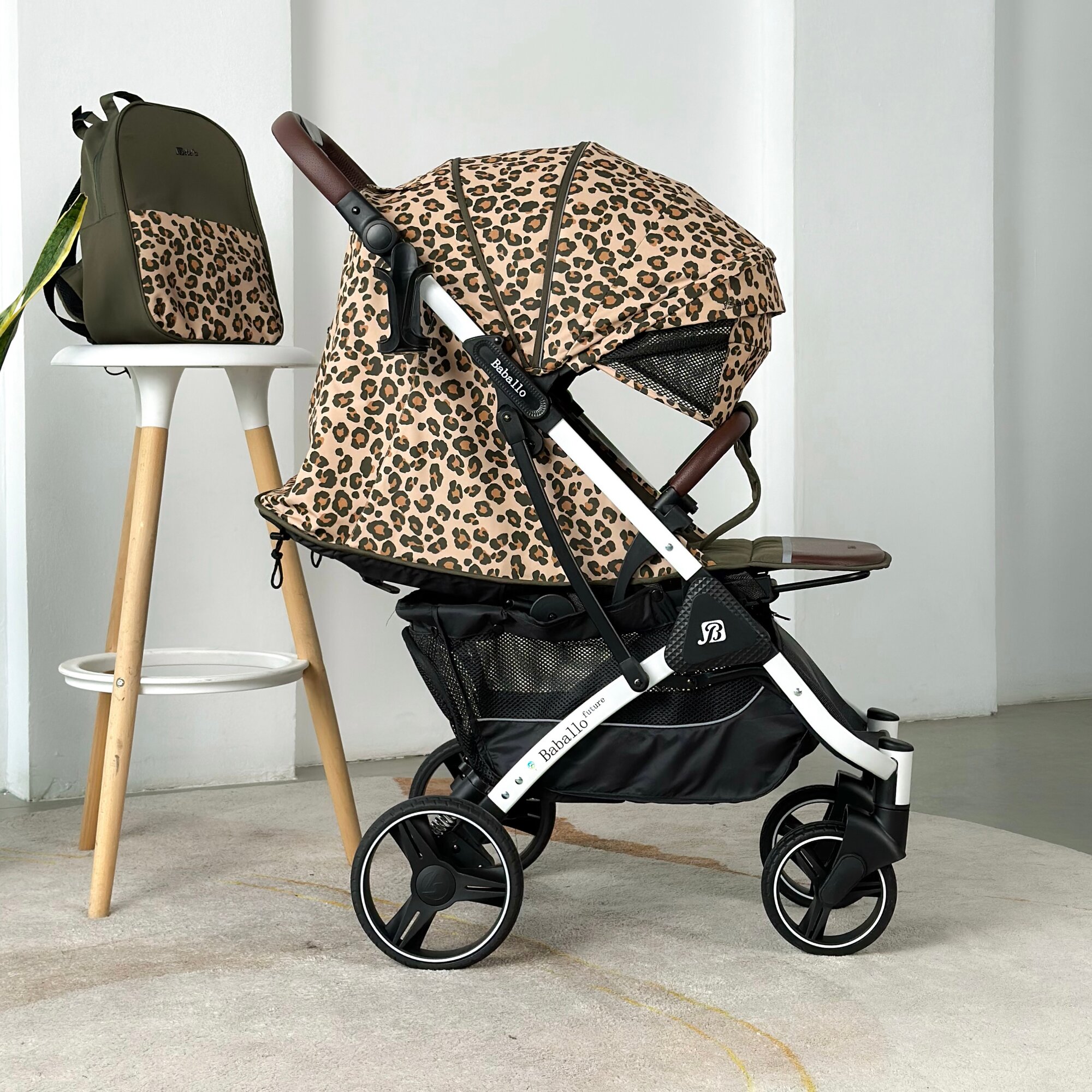 Купить Коляска прогулочная Baballo 2024 леопард/белая рама + рюкзак (механическая регулировка спинки)