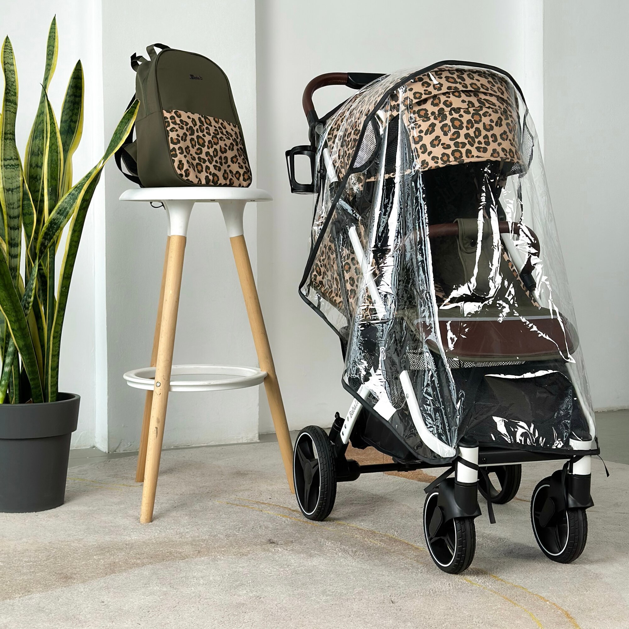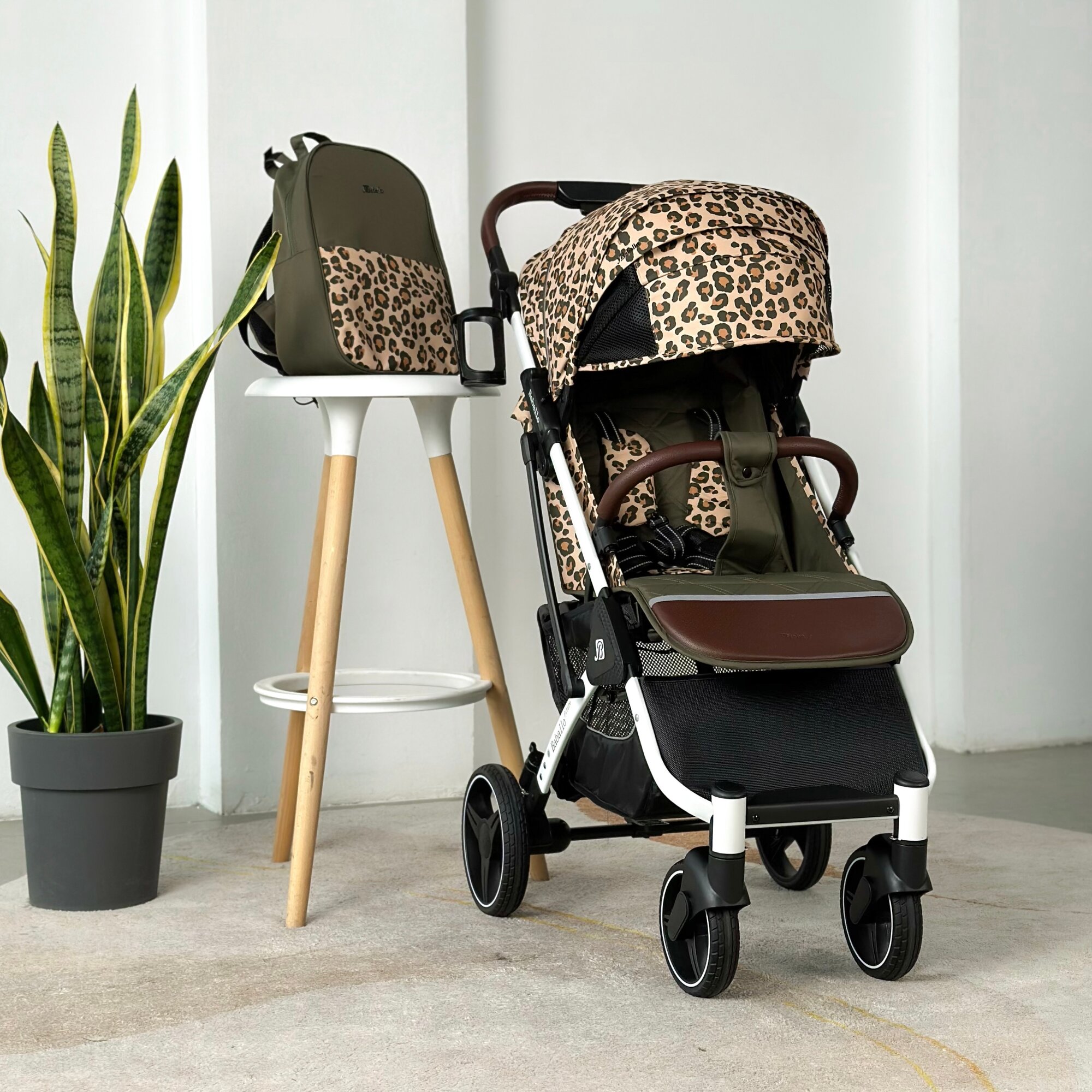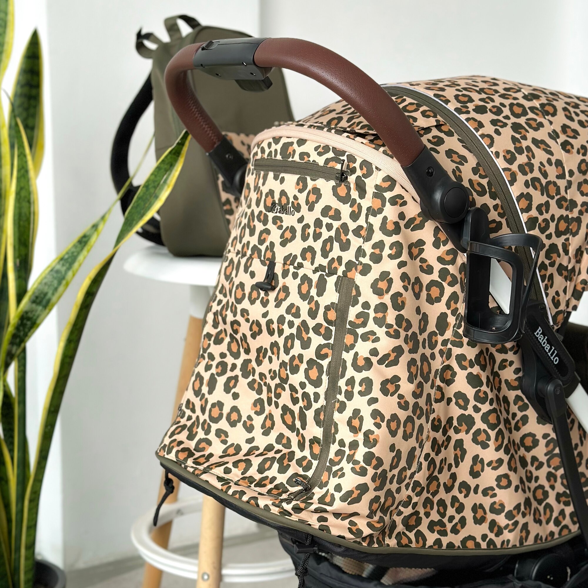 Купить Коляска прогулочная Baballo 2024 леопард/белая рама + рюкзак (механическая регулировка спинки)