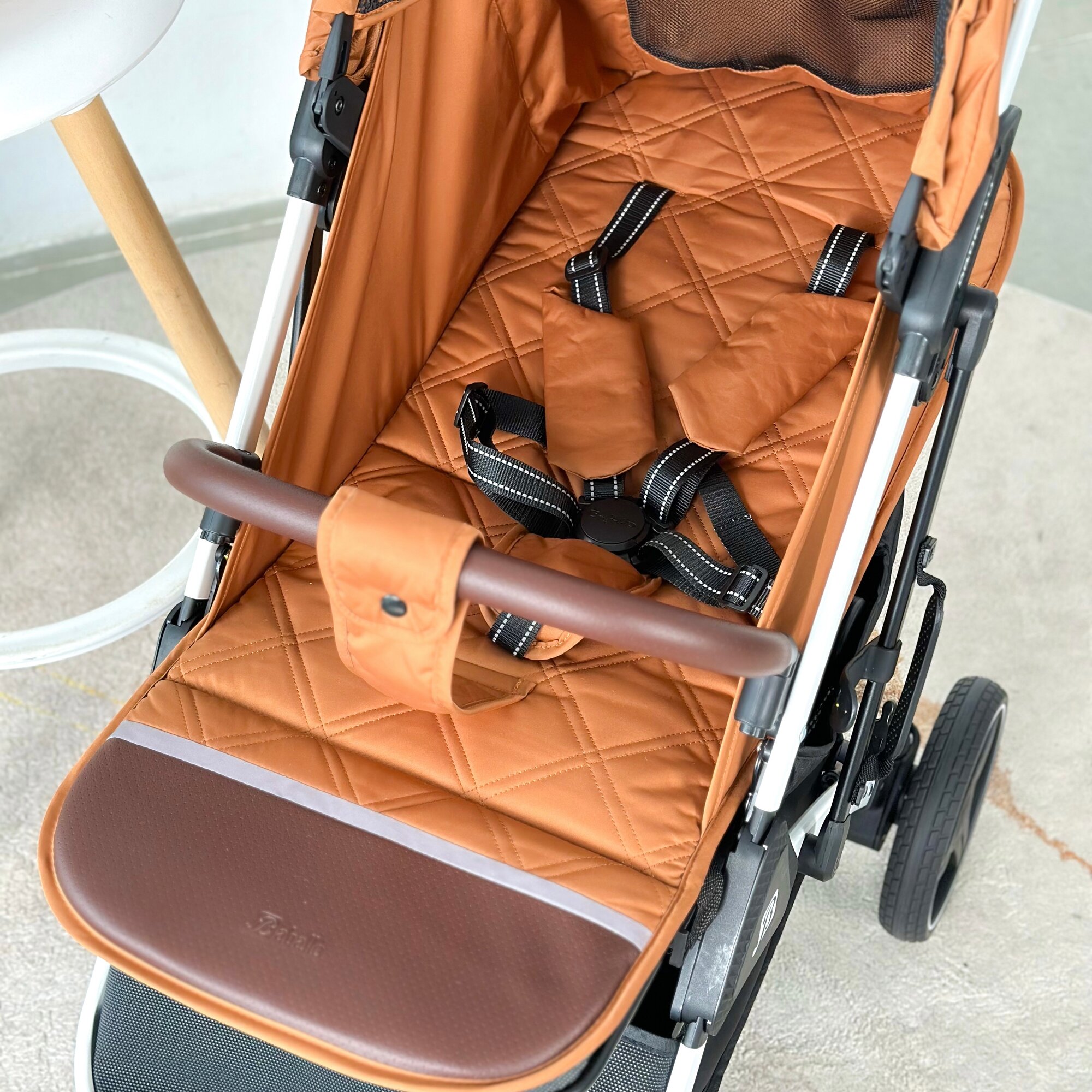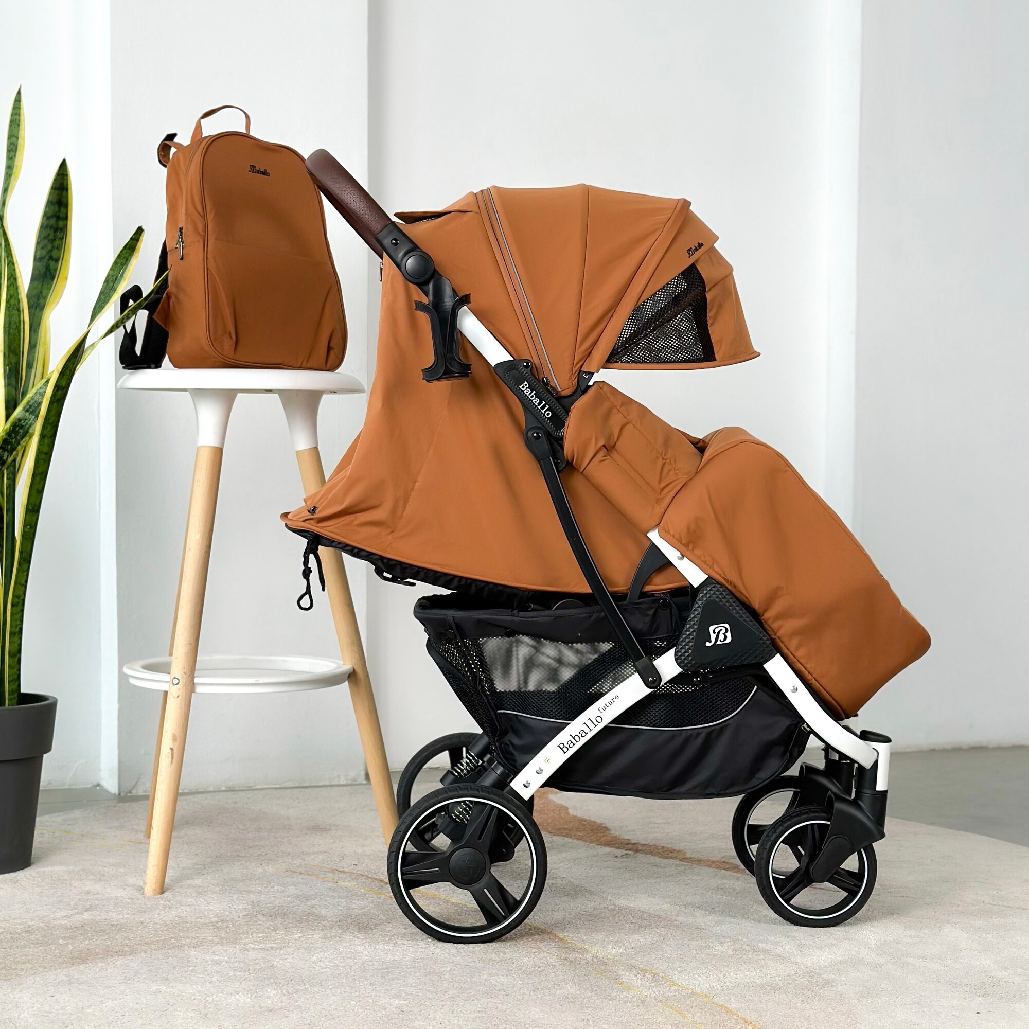 Коляска прогулочная Baballo 2024 ORIGINAL коричневая/белая рама + рюкзак (механическая регулировка спинки)