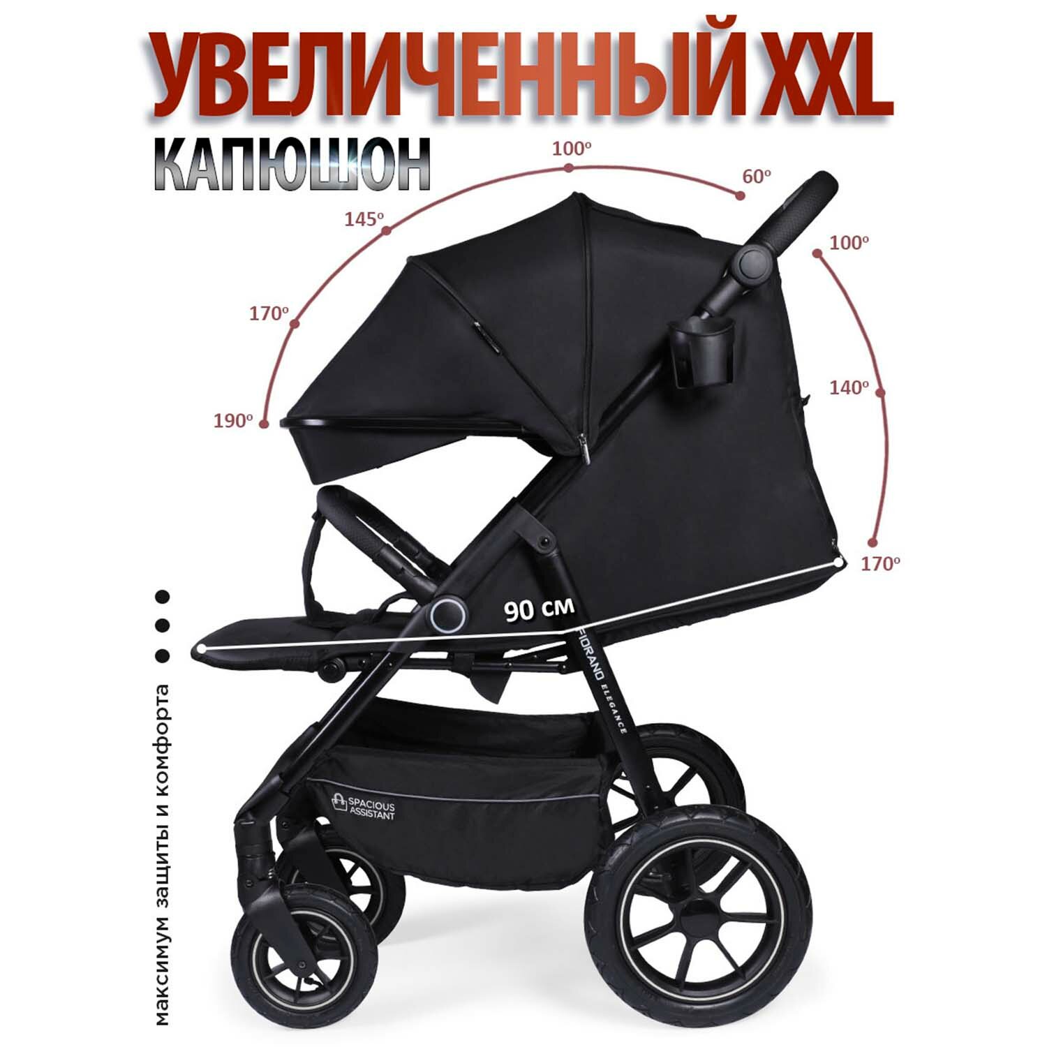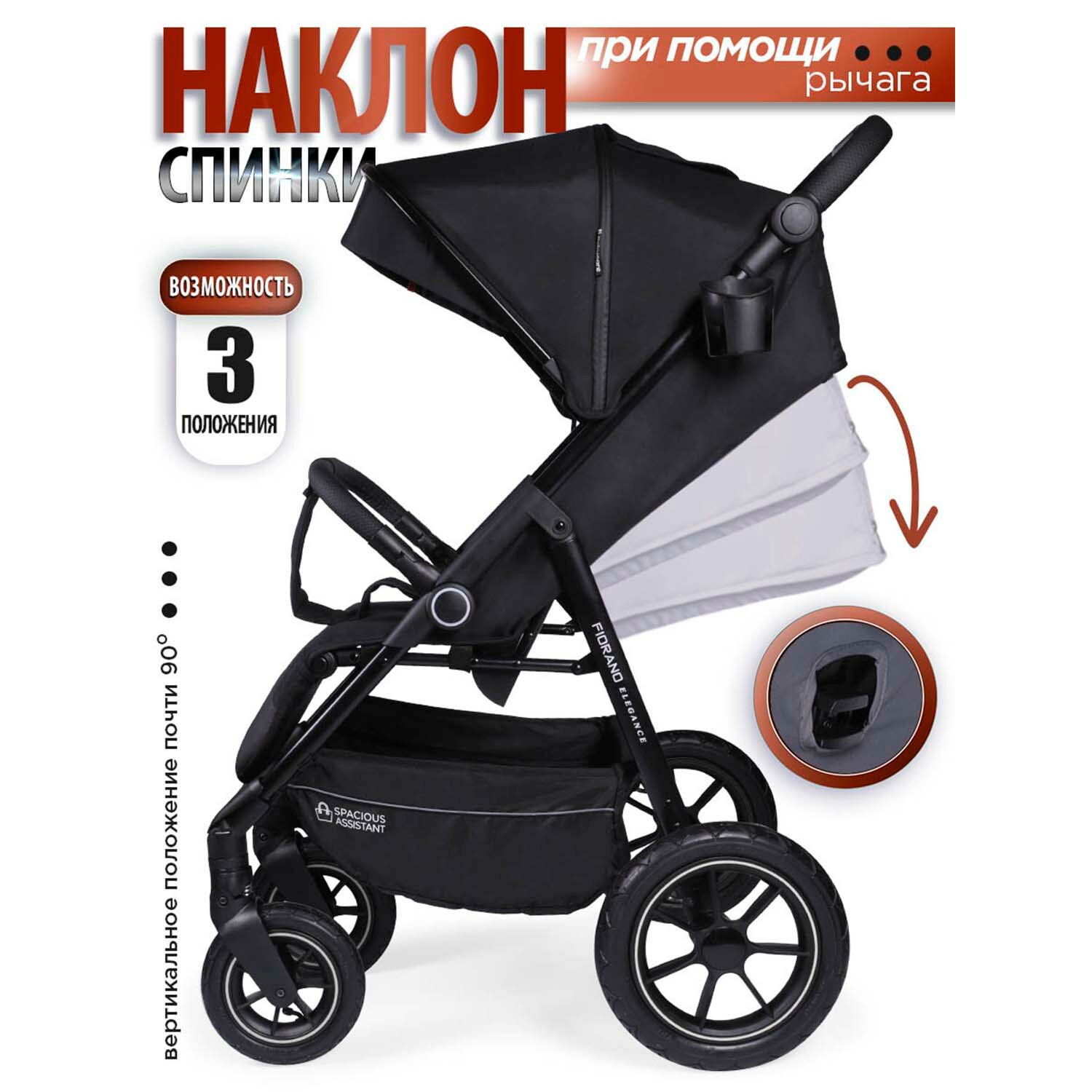 Коляска прогулочная всесезонная Fiorano, надувные колеса, черный интересное:
