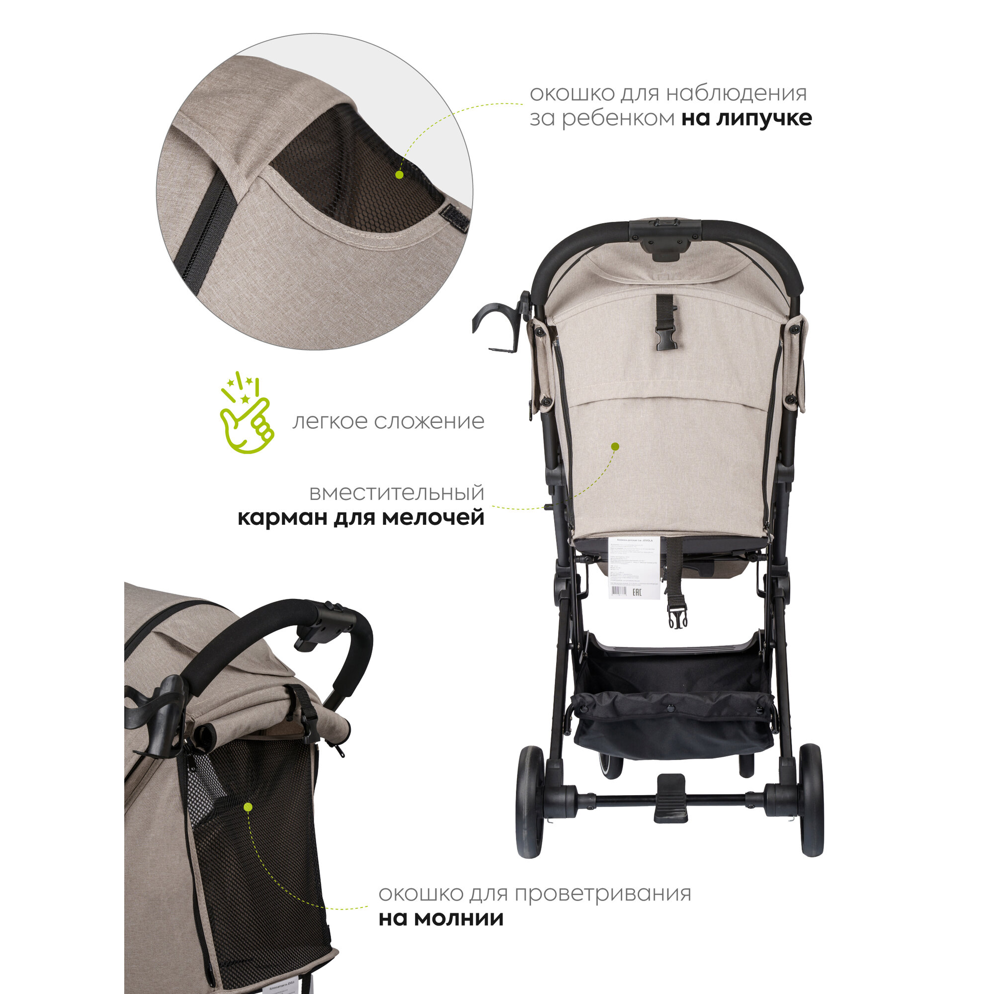 СохранитьКоляска прогулочная Jovola Skyline с ручкой для транспортировки, бежевый интересное: