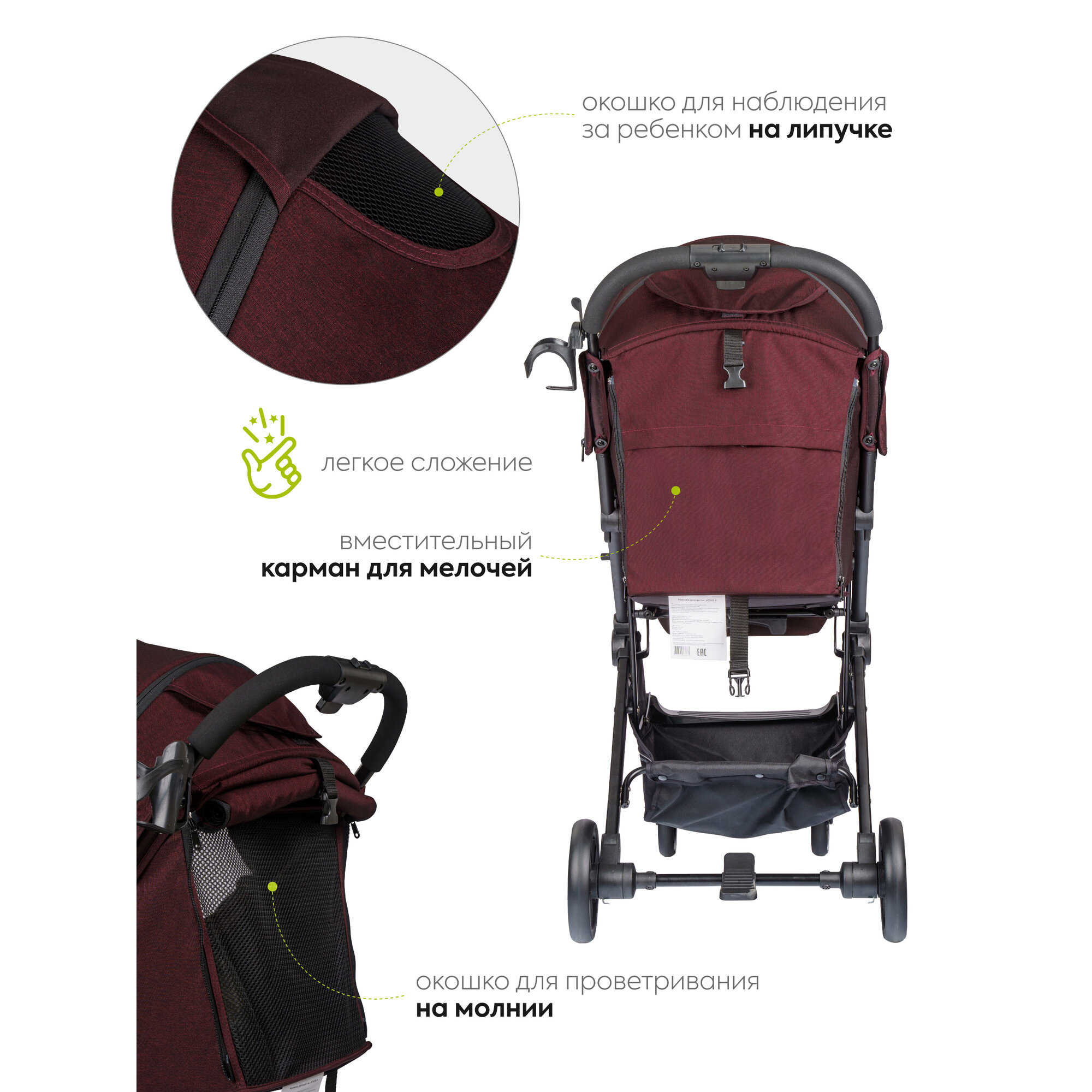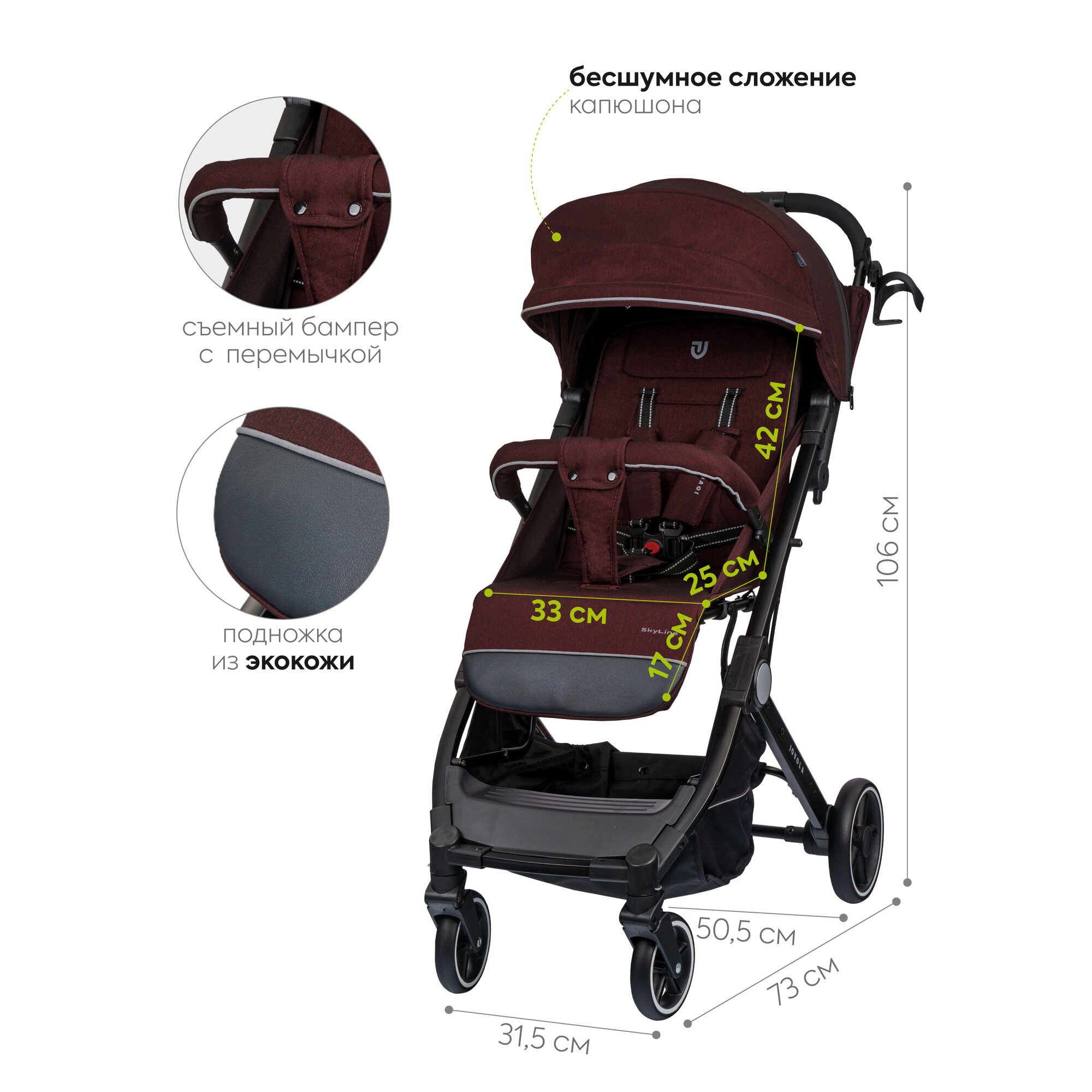 СохранитьКоляска прогулочная Jovola Skyline с ручкой для транспортировки, бордовый интересное: