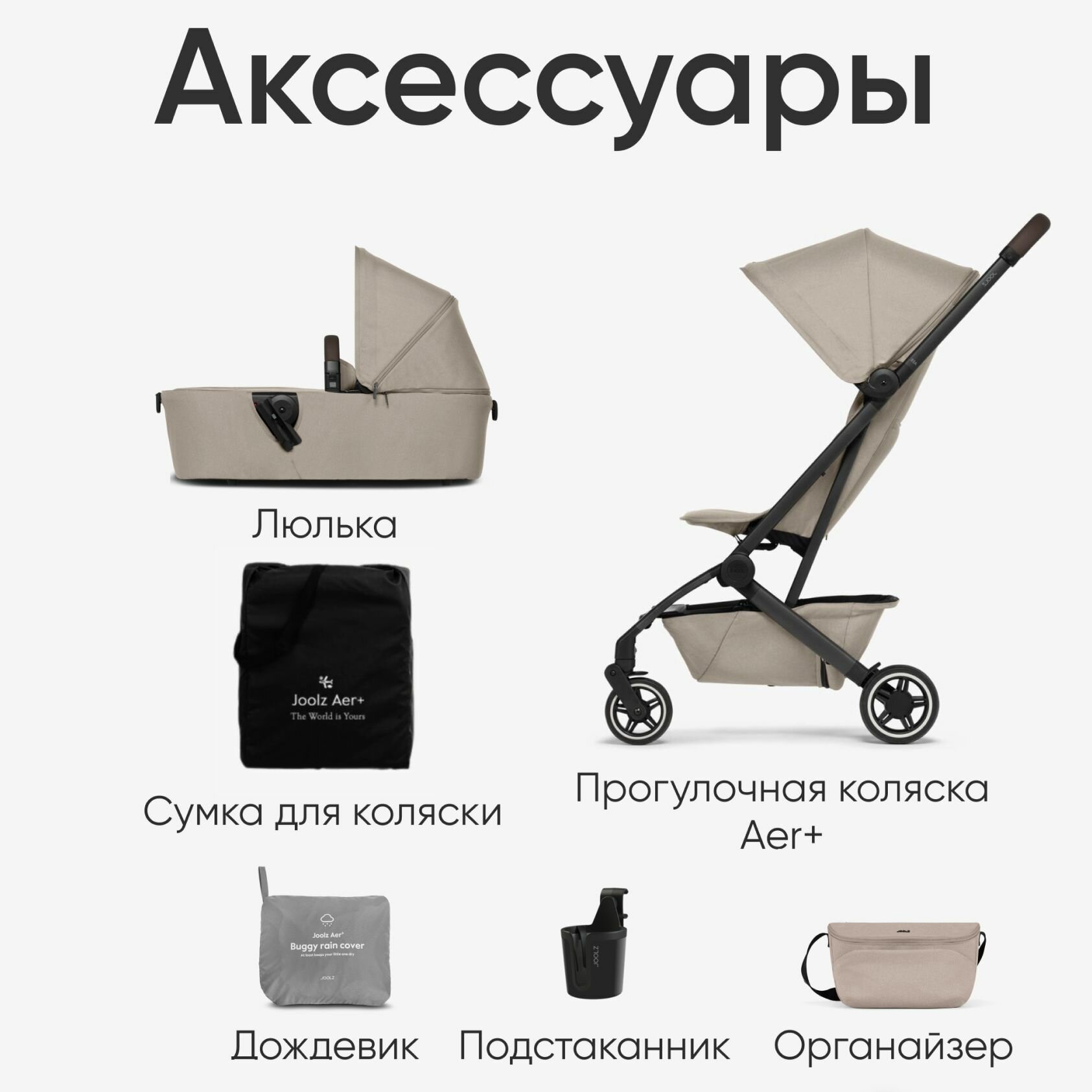 Прогулочная коляска Joolz Aer+ Sandy Taupe c бампером и подстаканником
