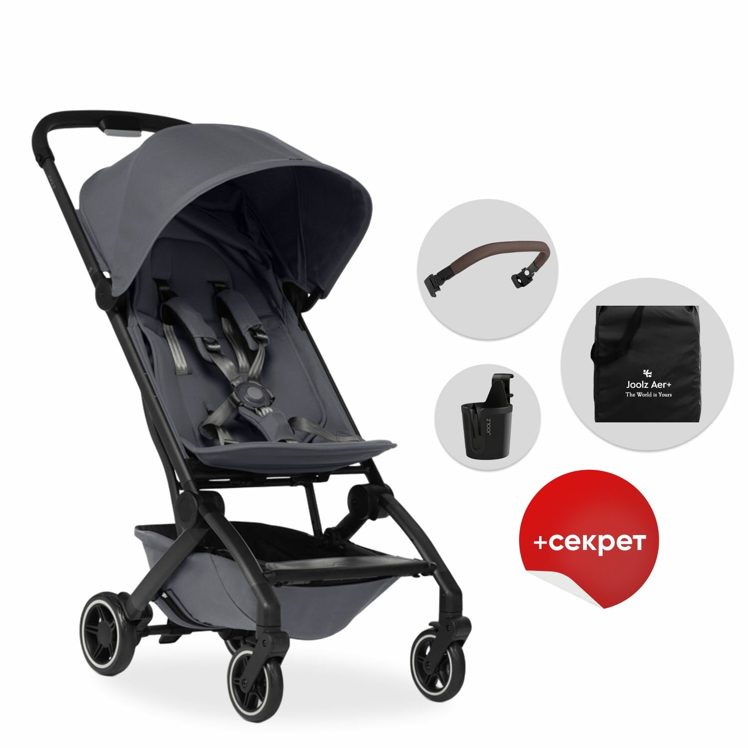 Joolz Aer+ Прогулочная коляска, Space Black c бампером, подстаканником, сумкой