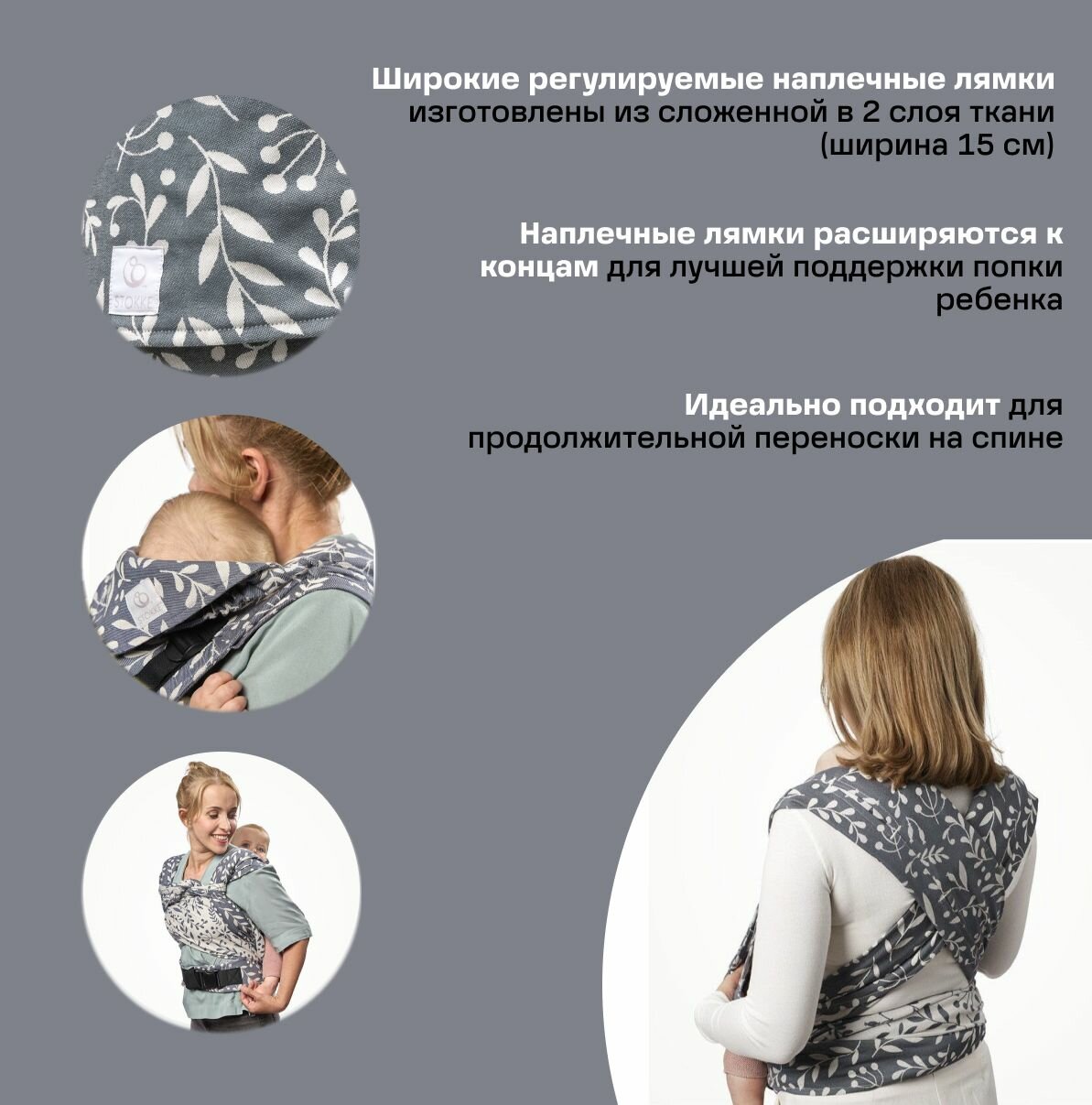 Рюкзак-кенгуру для новорожденных Stokke Limas Carrier Plus Floral Slate интересное: