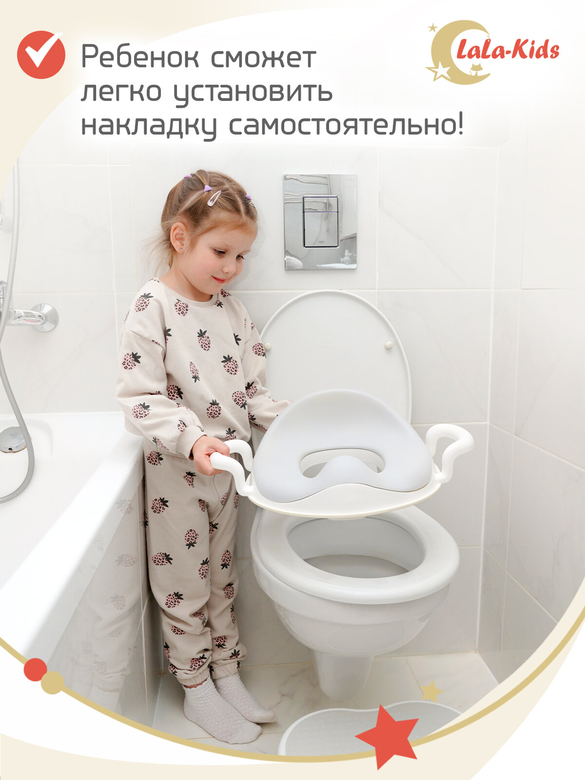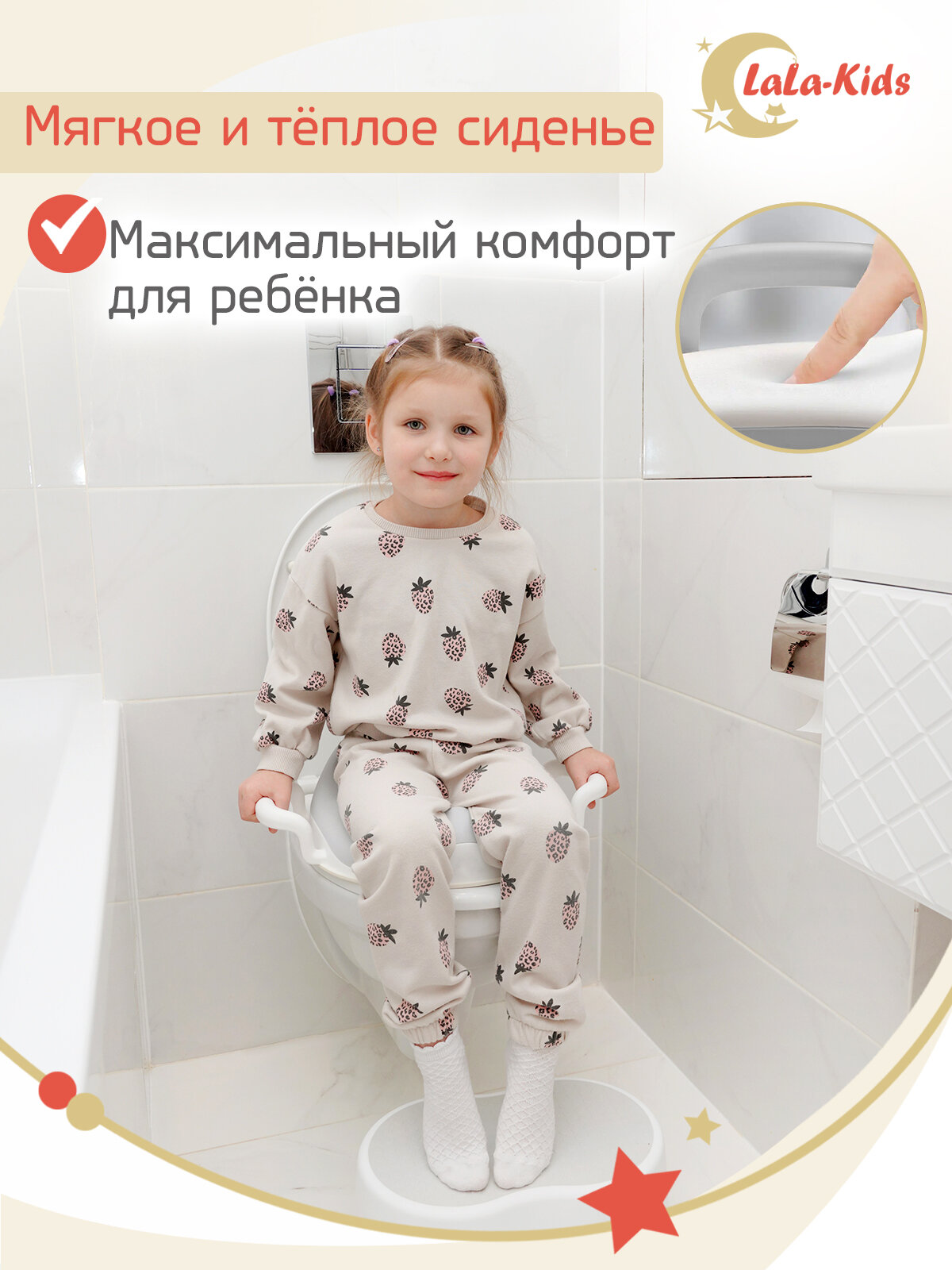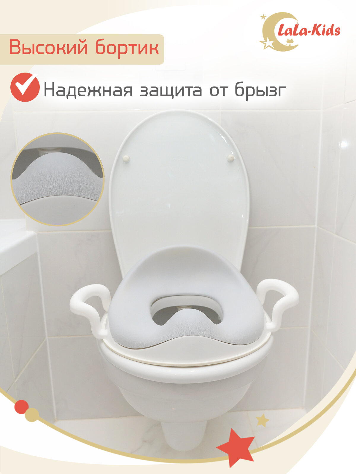 Детская накладка на унитаз с мягкими сиденьем и ручками - LaLa Kids интересное: