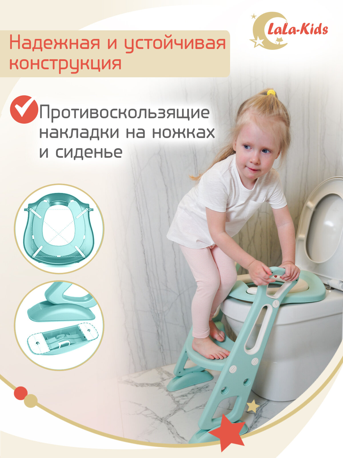 Сидение на унитаз LaLa-Kids со ступенькой зеленое интересное: