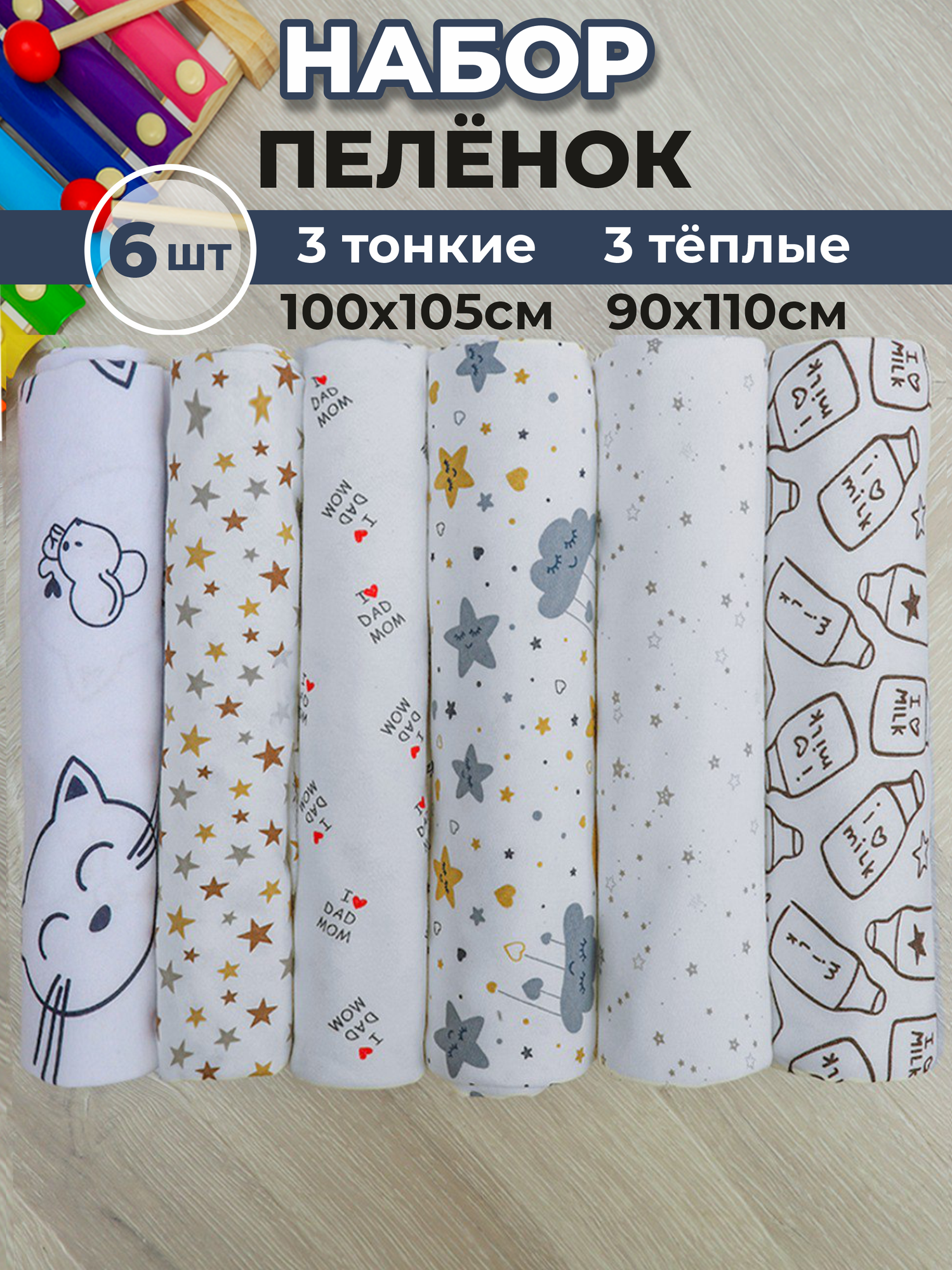 Набор пеленок для новорожденных Махутошка 6 штук футер/кулирка интересное: