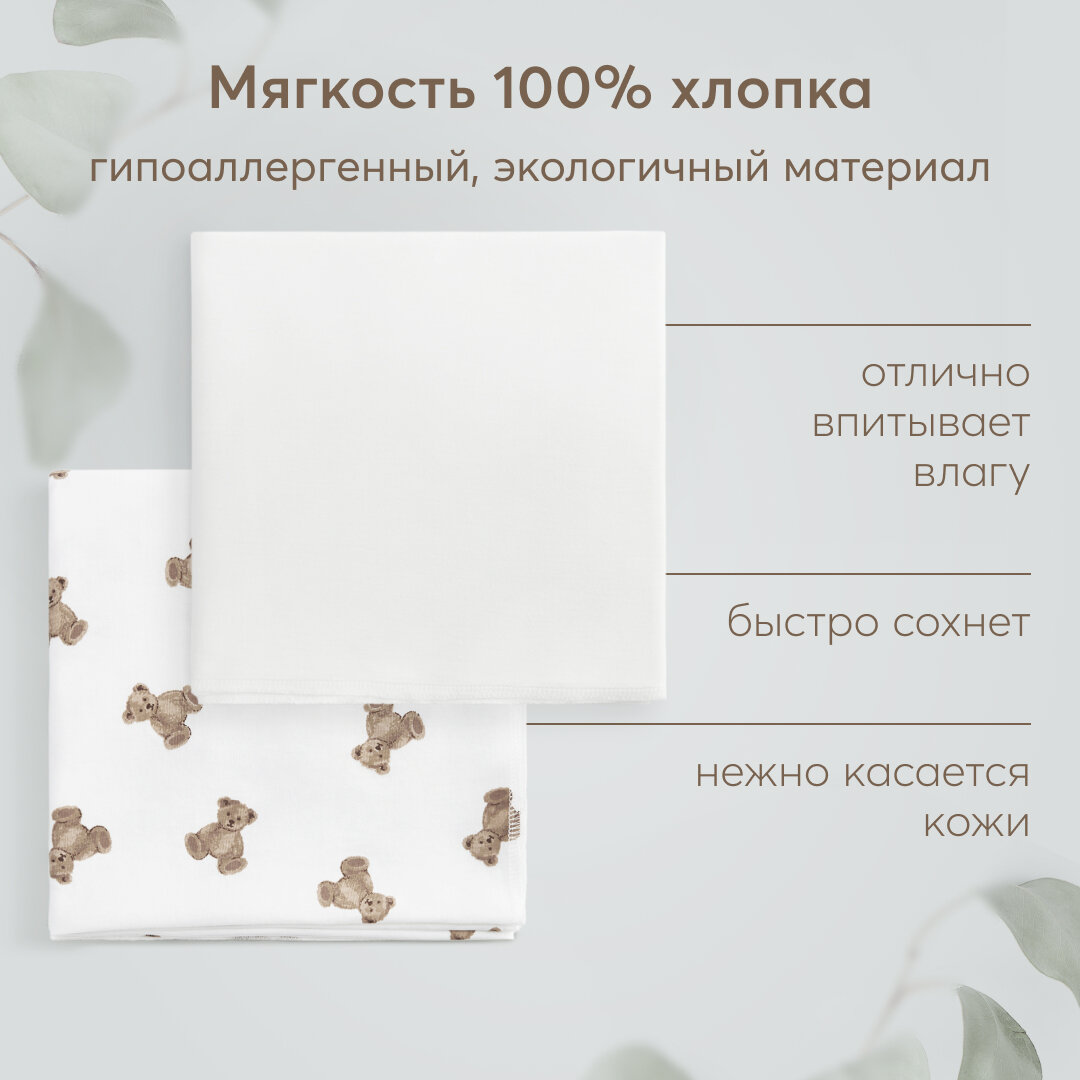 90126, Пеленки для новорожденных детей от Happy Baby, многоразовые детские, быстро сохнут, 2 шт., 90x90, белая с мишками и белая интересное:
