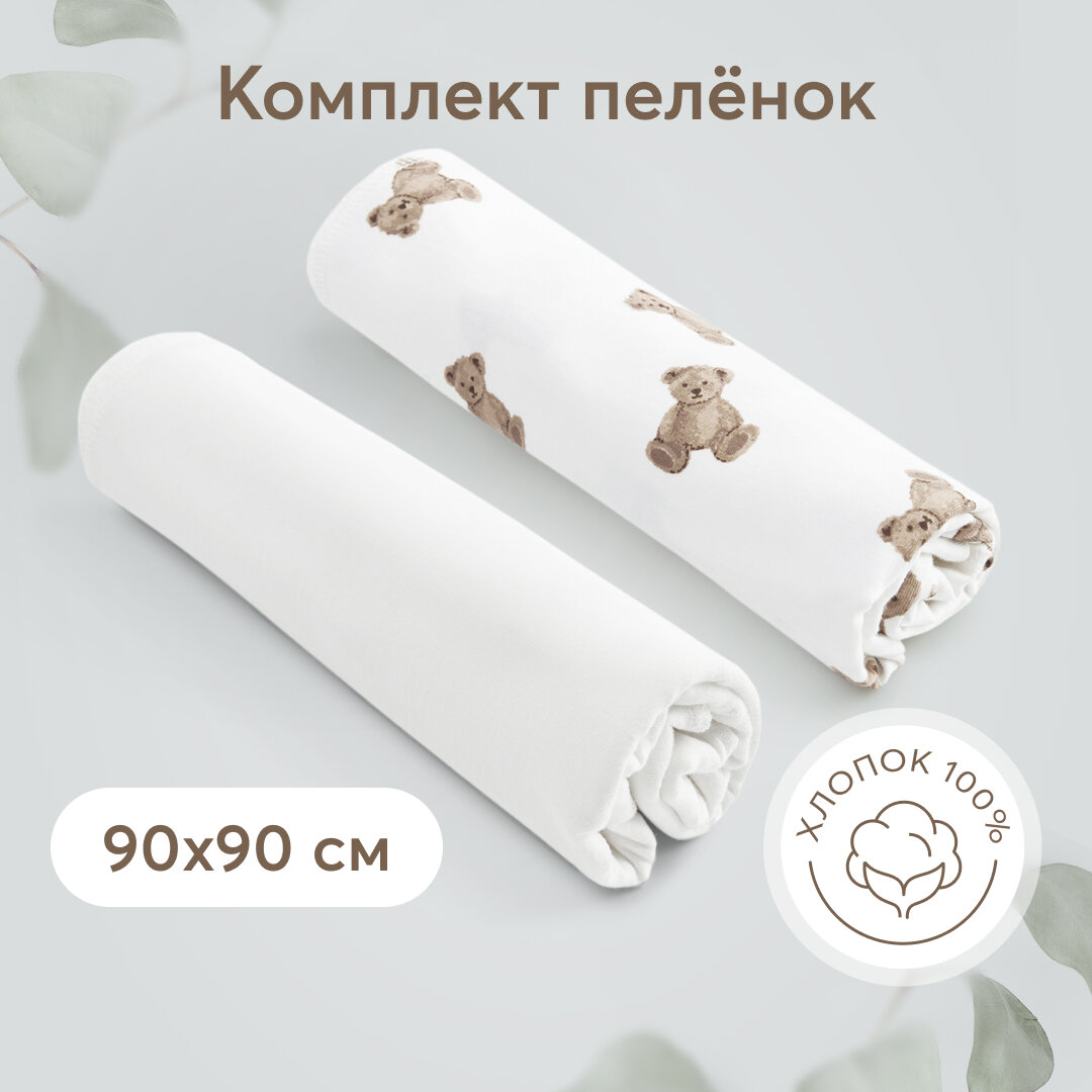 Купить 90126, Пеленки для новорожденных детей от Happy Baby, многоразовые детские, быстро сохнут, 2 шт., 90x90, белая с мишками и белая