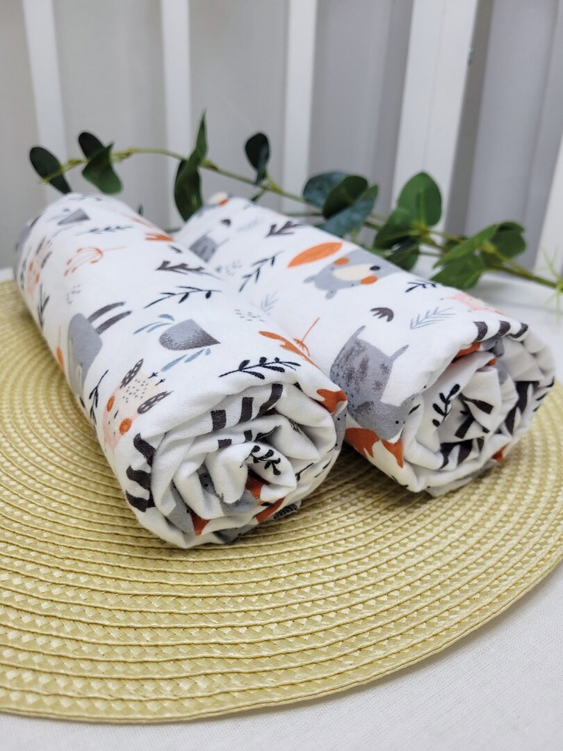 Набор Пеленок из фланели "Спящие животные на белом" 90*120см,2шт