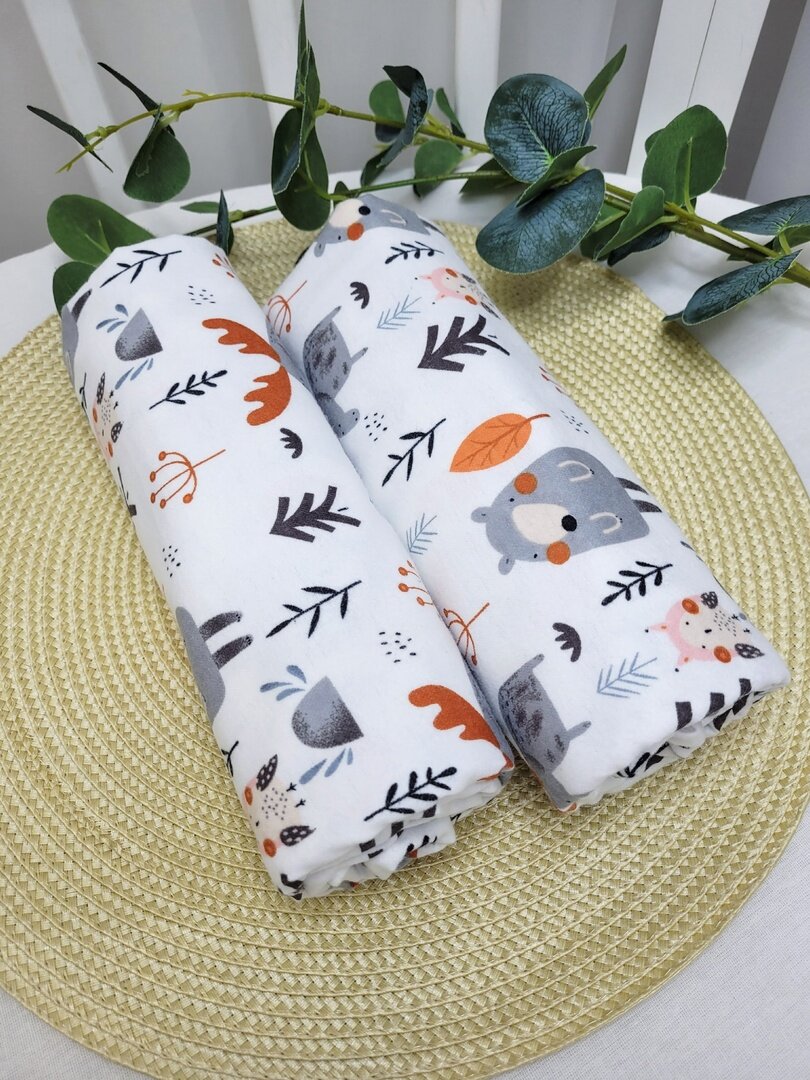 Набор Пеленок из фланели "Спящие животные на сером" 90*120см,2шт