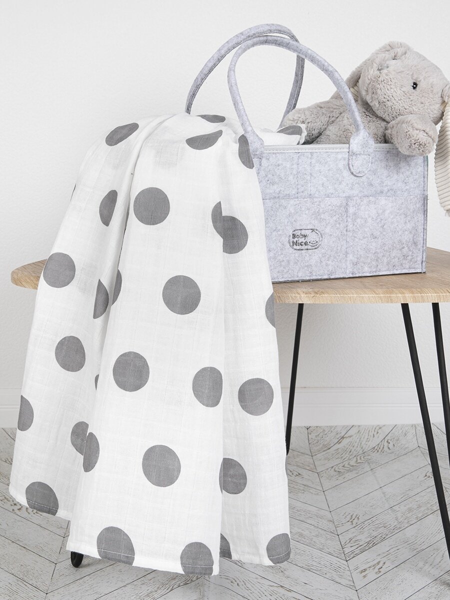 Муслиновые пеленки для новорожденных хлопок, 120х120, "Горох серый" Tessolo Home