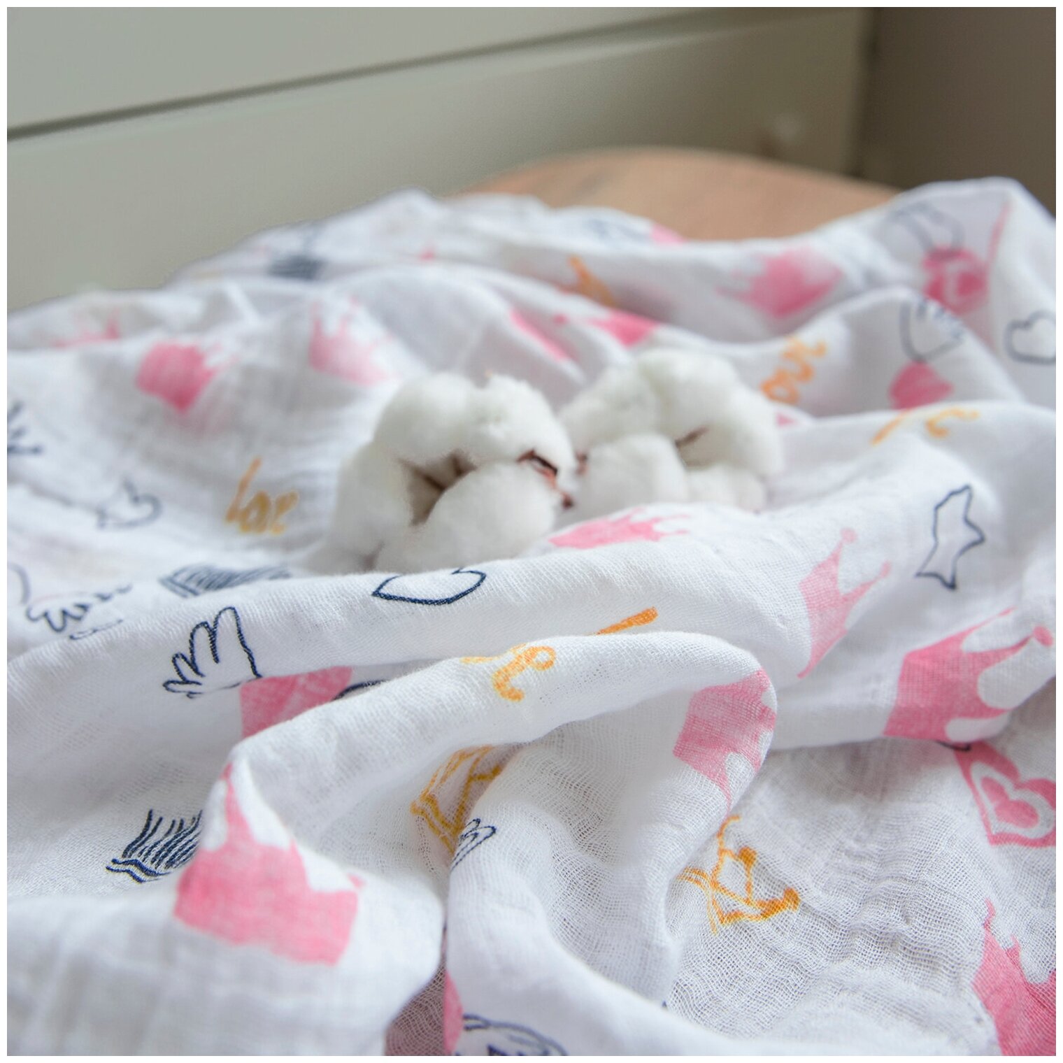 Пеленки для новорожденных муслиновые 120х120 "Корона" Хлопок 100%/пеленка муслиновая для новорожденных на выписку, для младенцев, пеленка детская Baby Nice