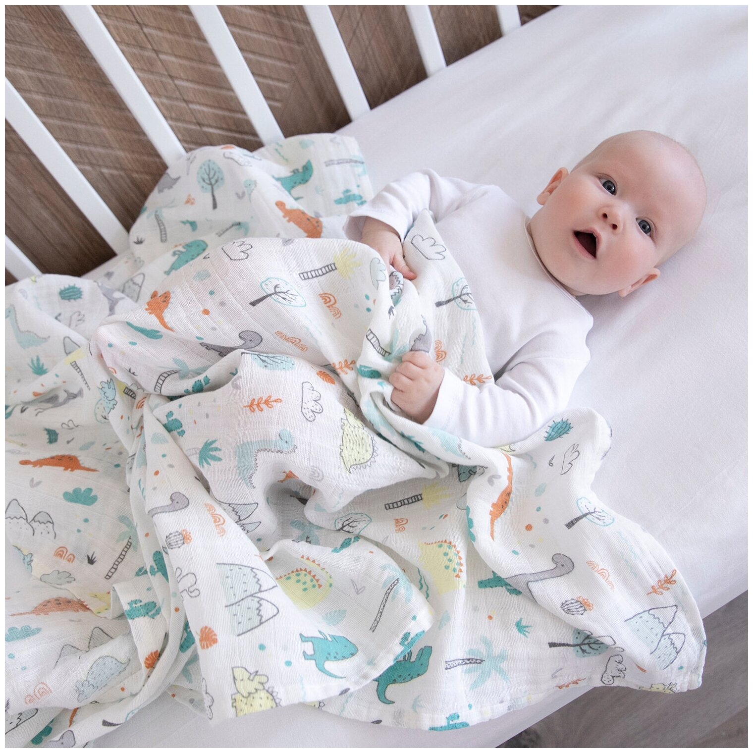 СохранитьПеленка муслиновая 120х120, "Динозаврики" интересное: