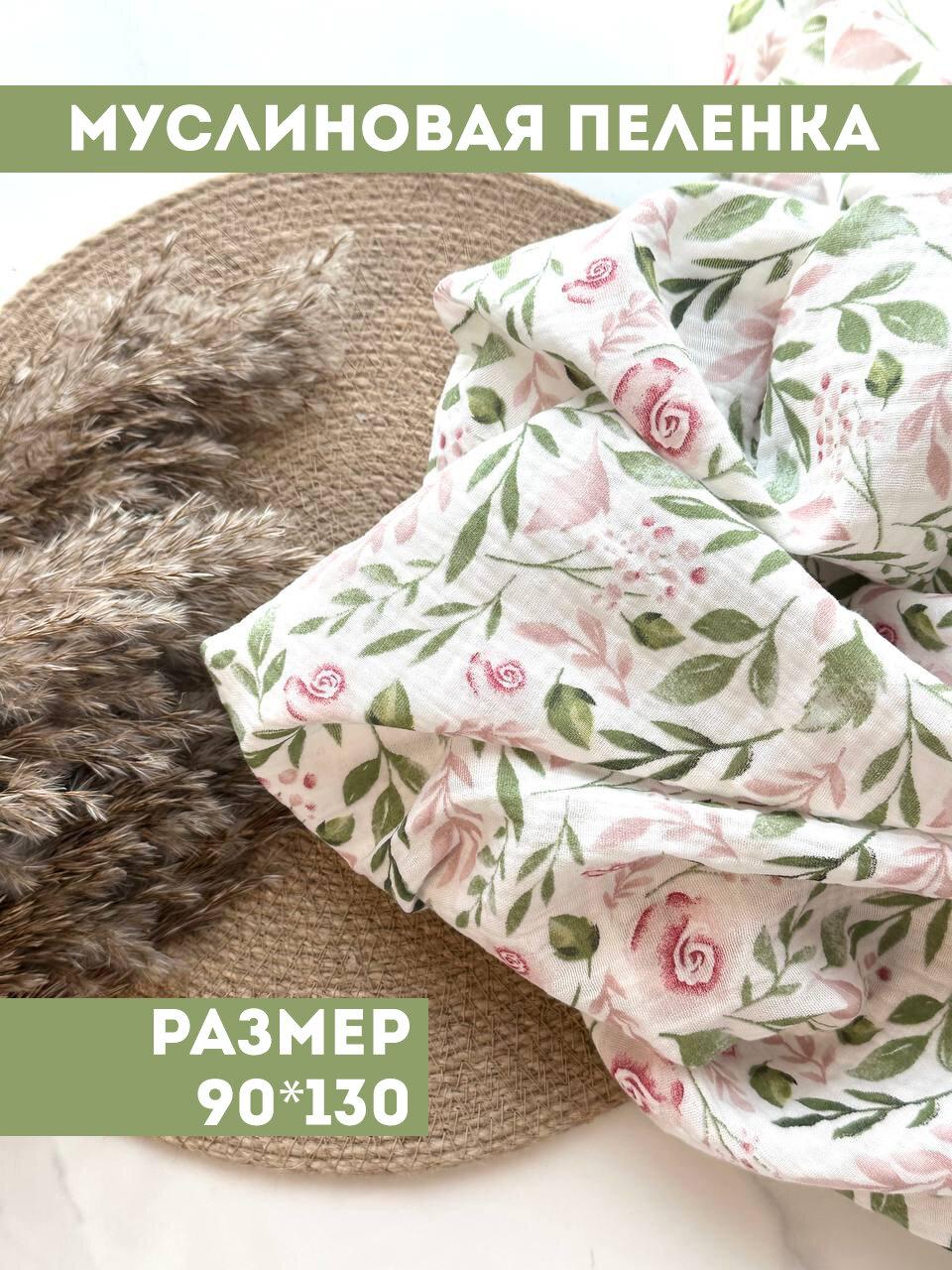 Многоразовые муслиновые пеленки для новорожденных из муслина белые розы