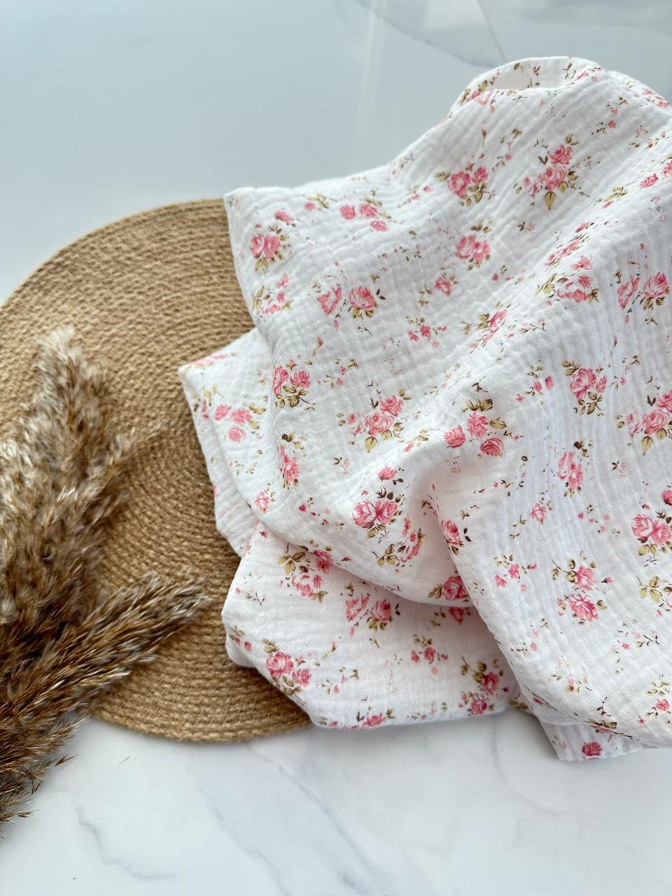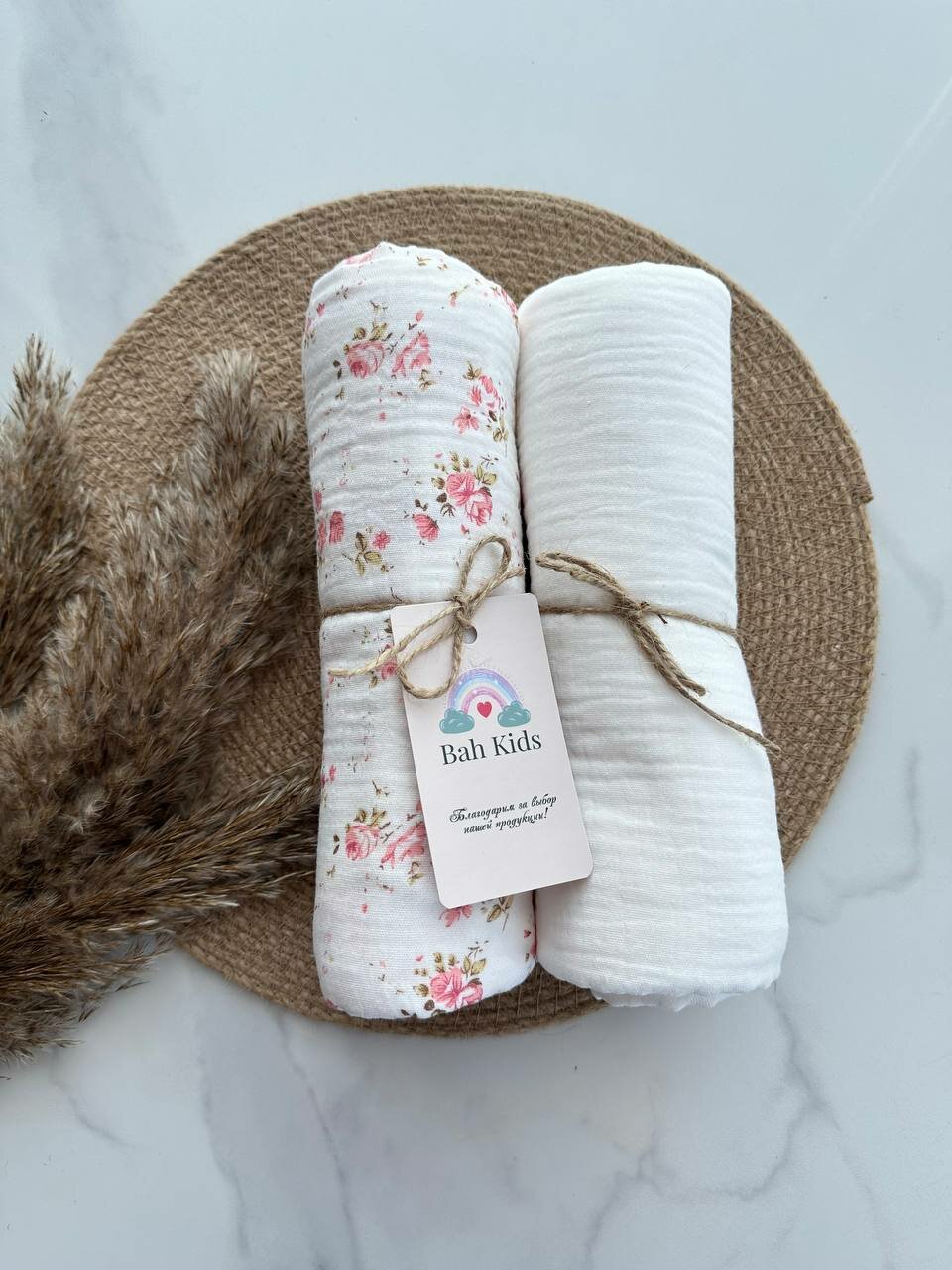 Многоразовые муслиновые пеленки для новорожденных из муслина белые розы