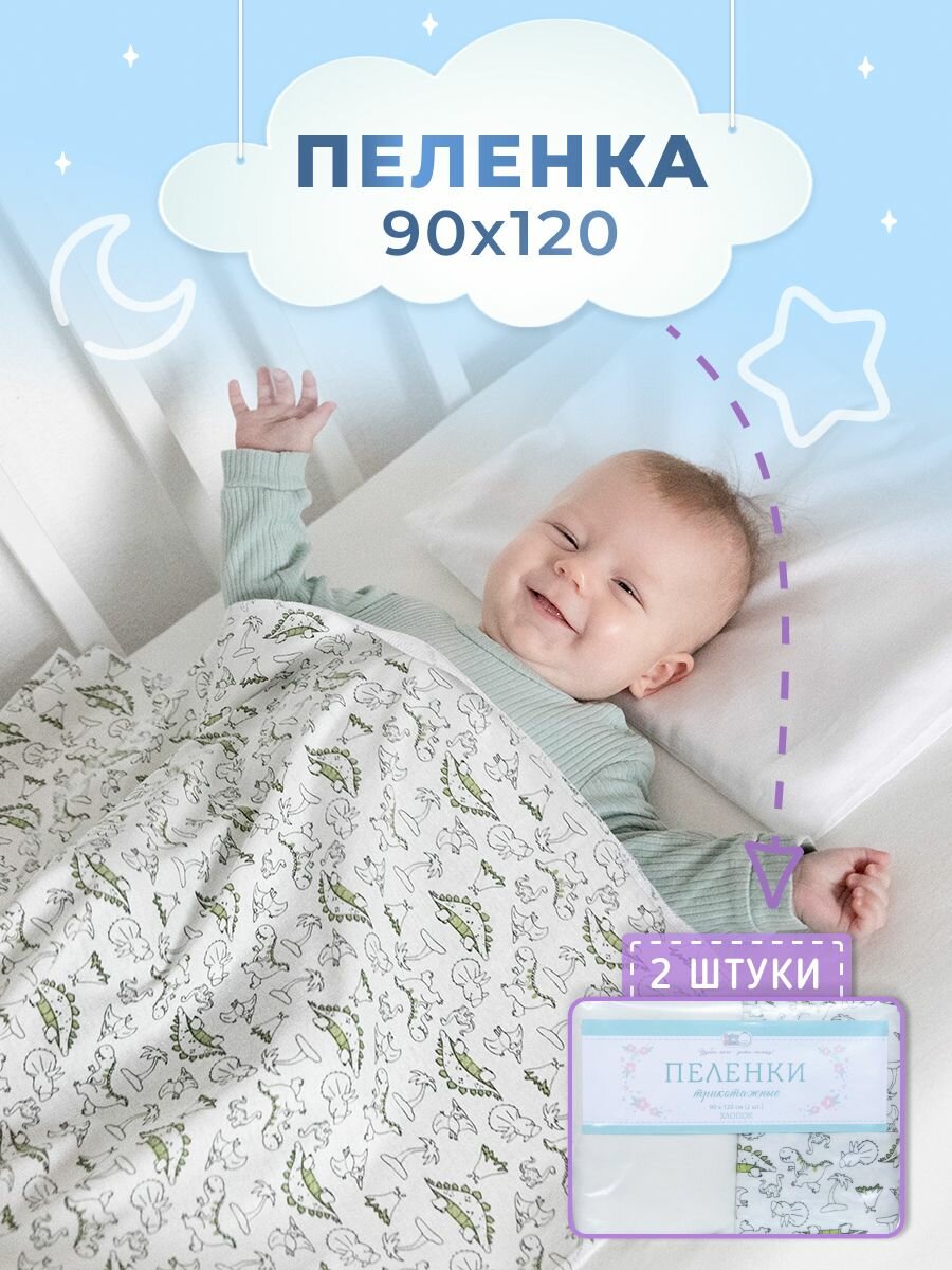 Пеленки трикотажные детские для новорожденных 2 шт 90х120 интересное: