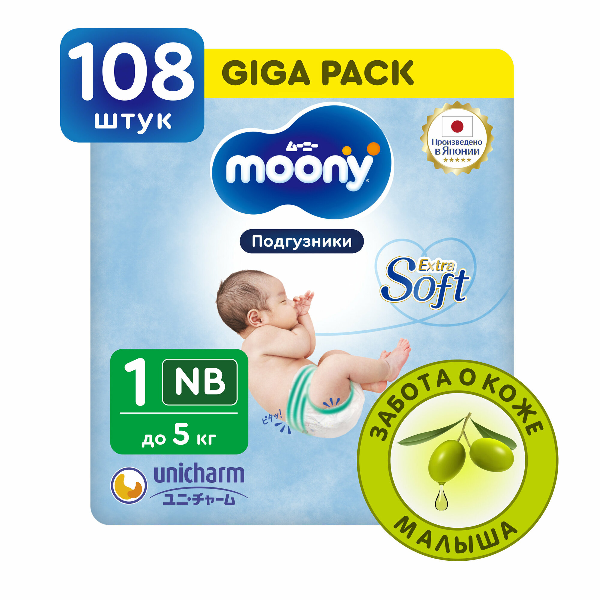 Купить Японские подгузники для новорожденных MOONY Extra Soft 1 NB до 5 кг, GIGA 108 шт
