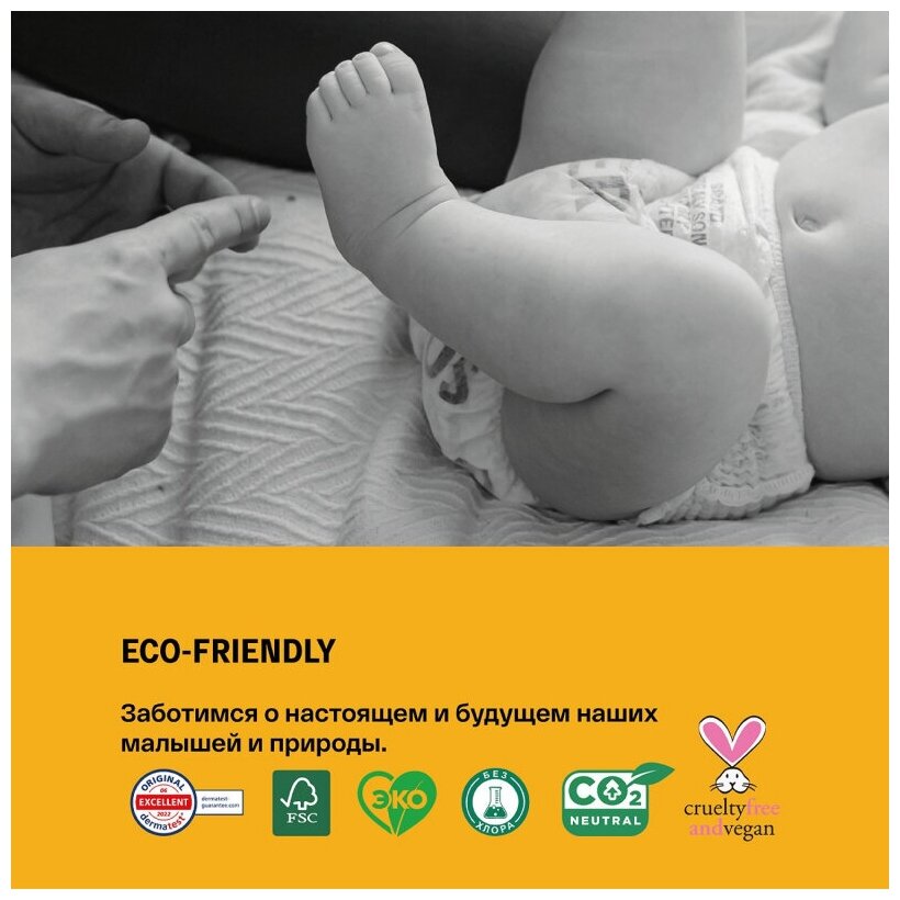 | Материалы | Впитывающий слой: Целлюлоза из возобновляемых лесных угодий без содержания хлора, сверхабсорбентный полимер из Японии, полипропилен. Внутренний слой: нетканный полипропилен. Внешний слой: полимерный спандекс (эластичная манжета для ног, крепежная система), нетоксичный клей из Германии (швы и стыки), супердышащая полиэтиленовая пленка, нетканный полипропилен. Отпечатано только с использованием чернил на водной основе. Продукция не содержит тяжелых металлов, свинца, латекса, парабенов, фталатов, лосьонов и отдушек. |