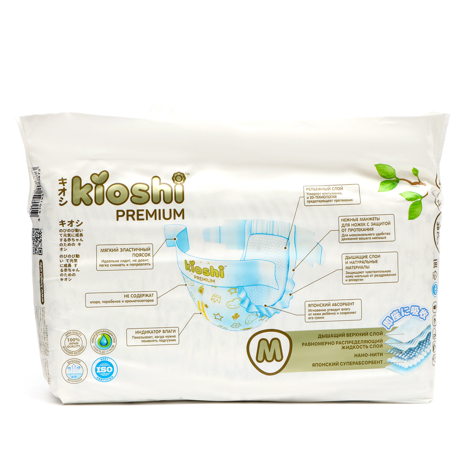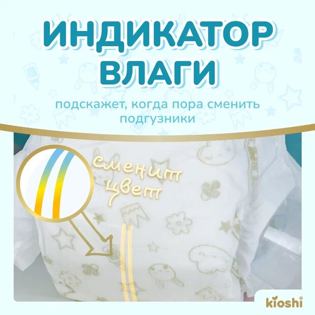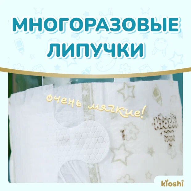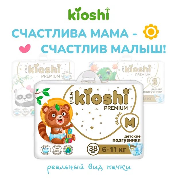 Подгузники KIOSHI "Premium", ультратонкие, размер M, 6-11кг, 38шт, многоразовые липучки