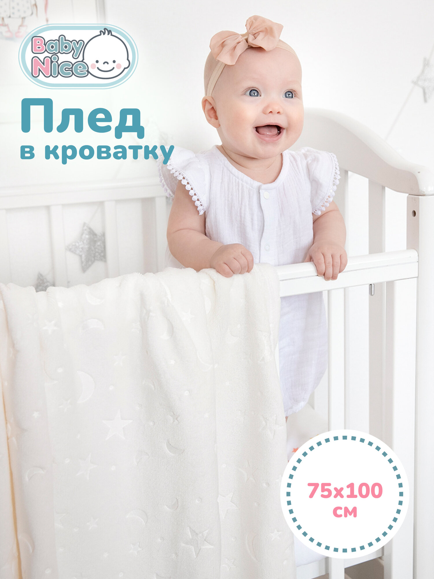 СохранитьПлед для новорожденного 75х100 пушистый детский в кроватку коляску, "Луны", молочный, белый интересное:
