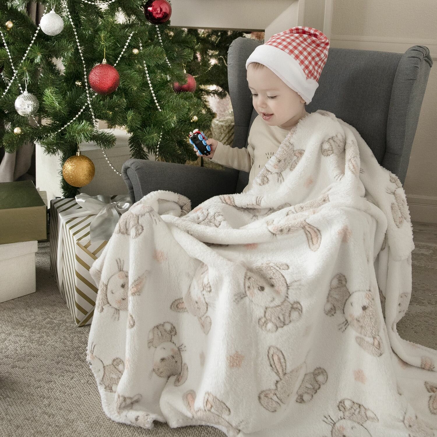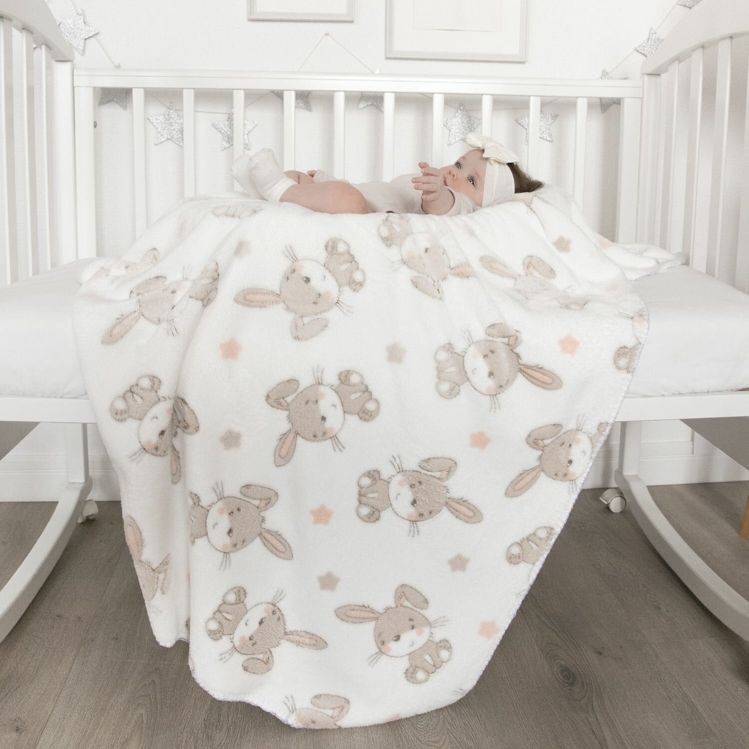 Купить Плед детский для новорожденных плюшевый 100х150 см "Зайки на белом" Baby Nice