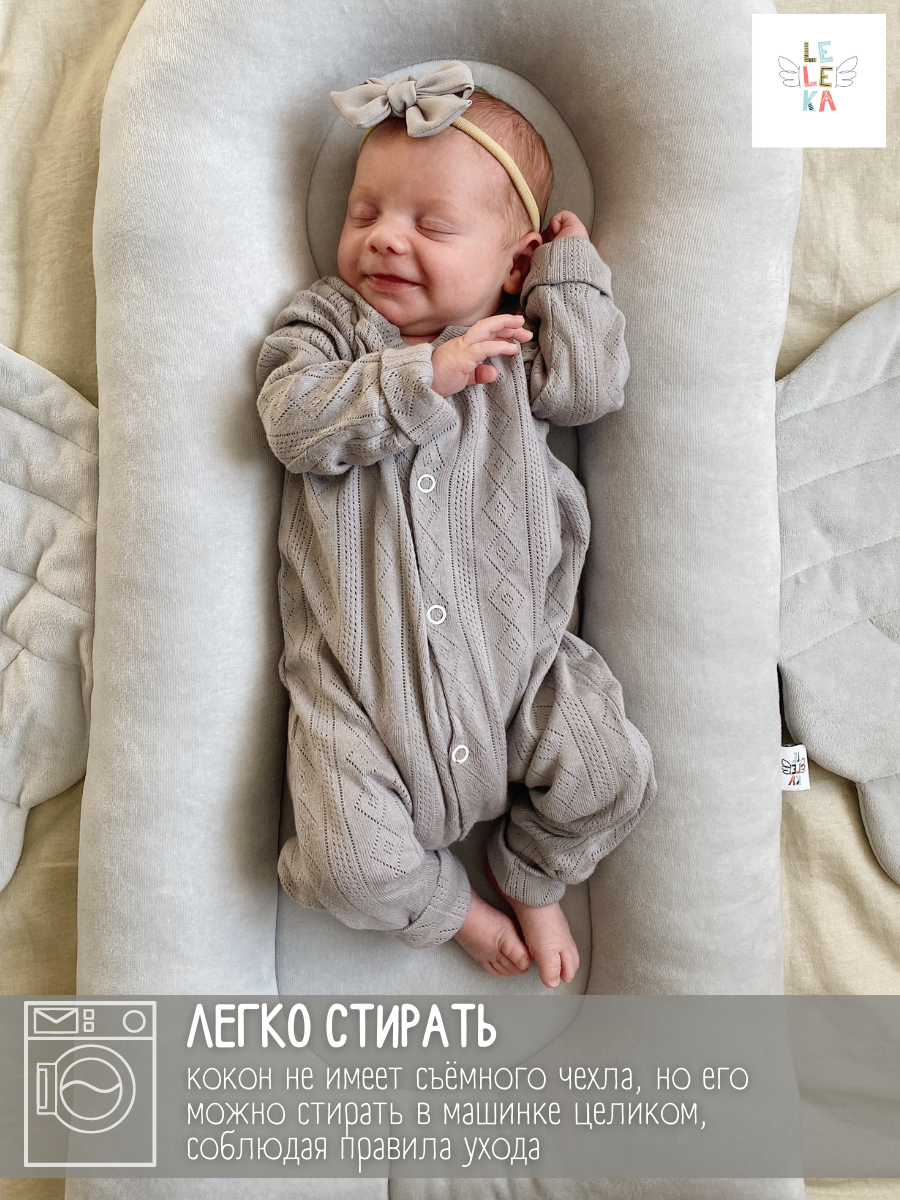 Кокон позиционер Le-Le-ka для сна и отдыха новорожденных серый интересное: