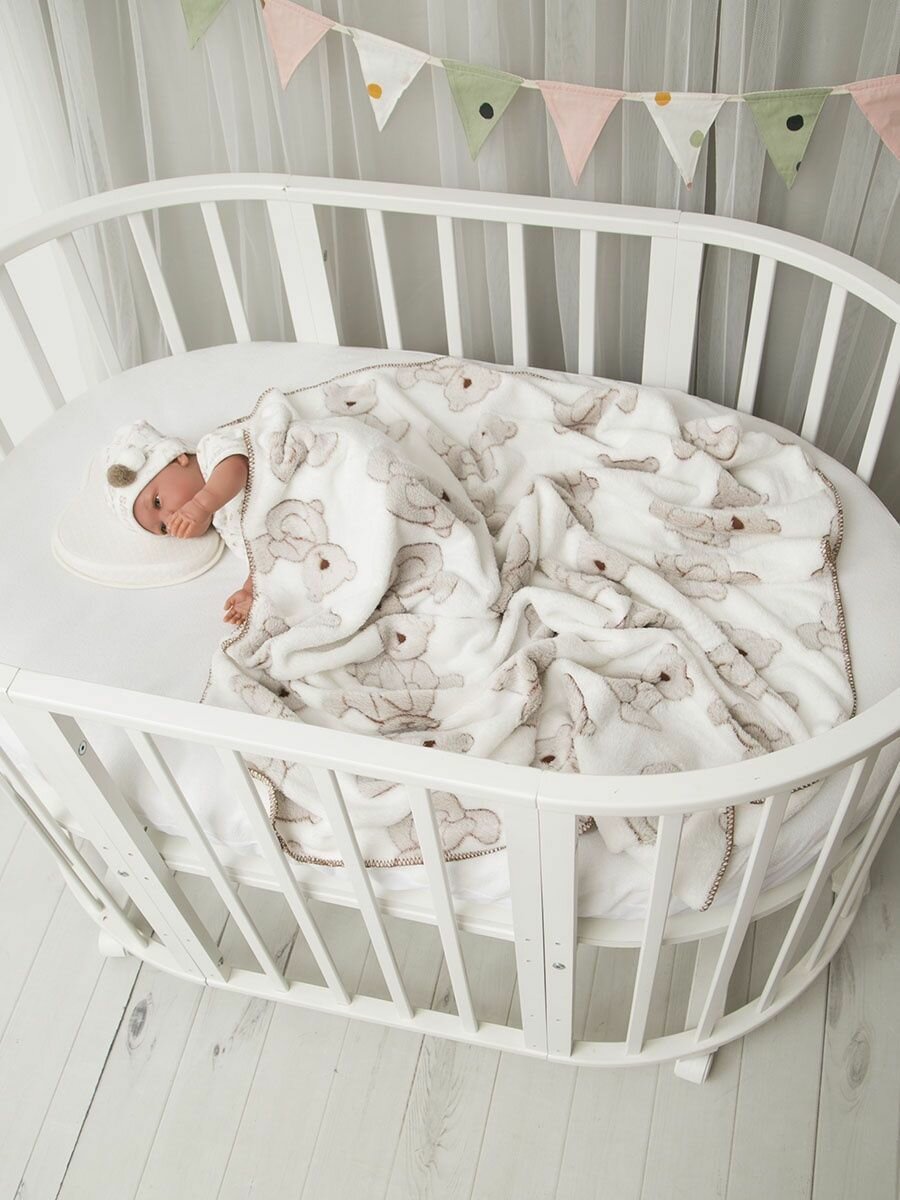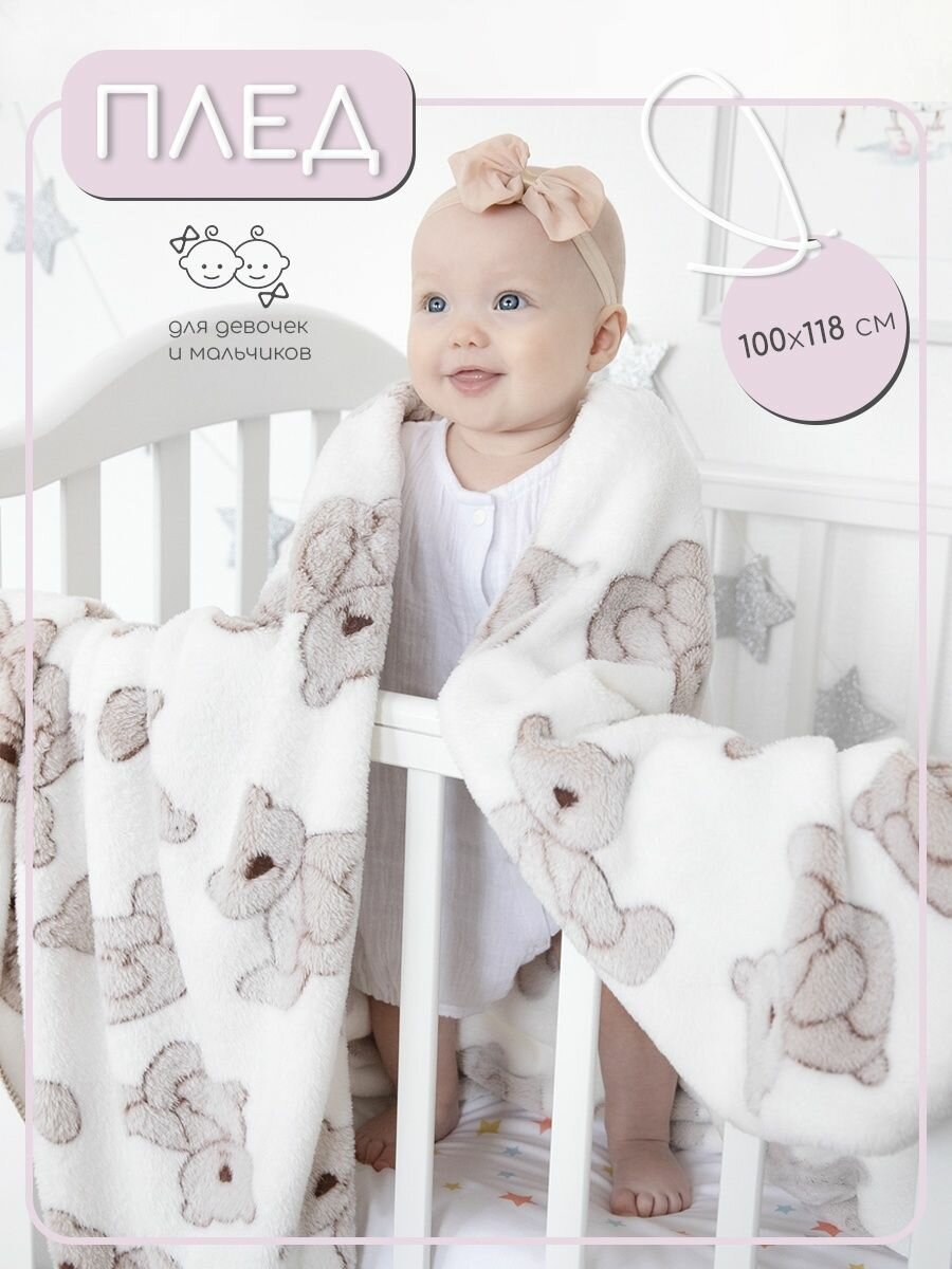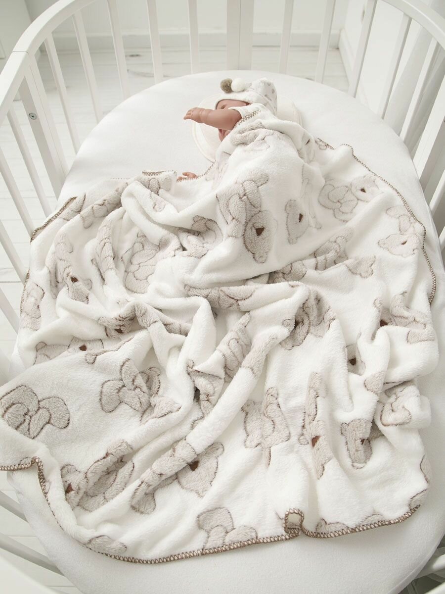 Купить Плед детский для новорожденных теплый плюшевый 100х118 см Мягкий, на выписку, в коляску "Мишки на белом" Baby Nice