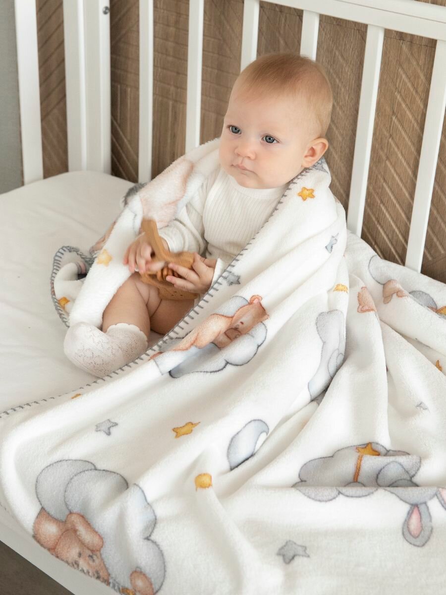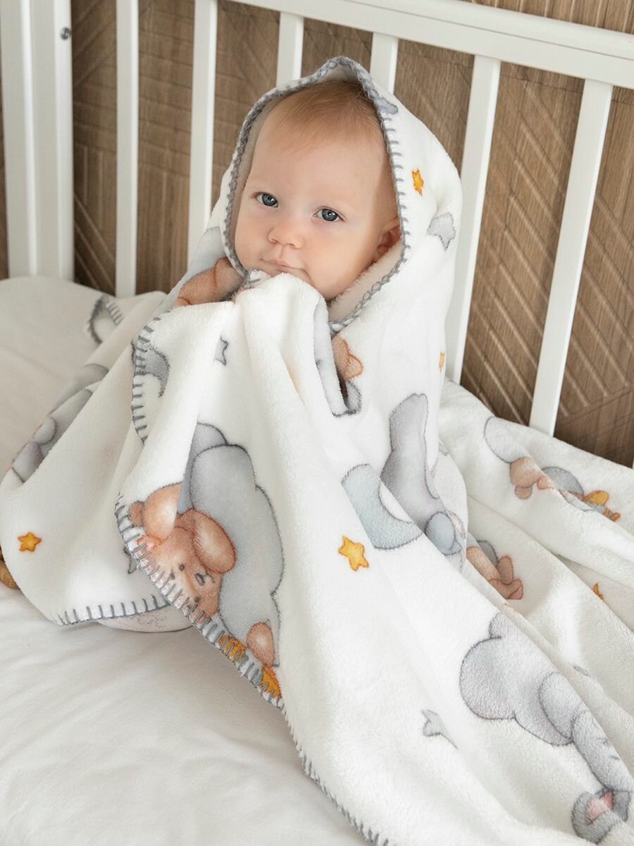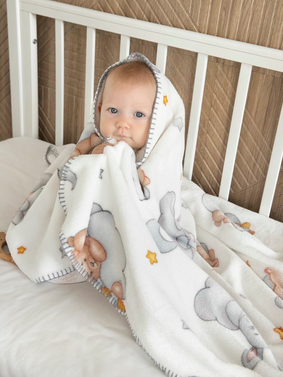 Плед для новорожденных плюшевый в кроватку, коляску 100х118 см "Мишутка" Baby Nice