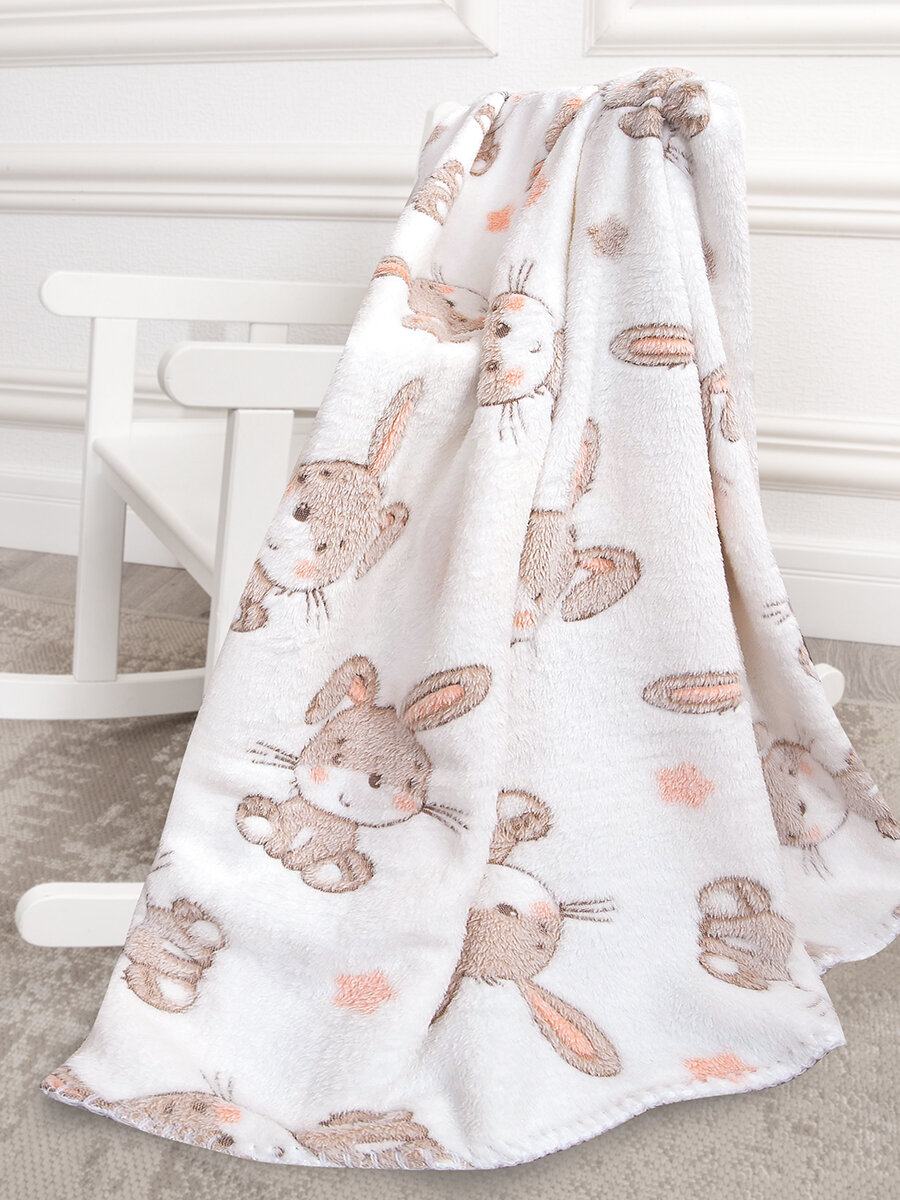Купить Плед для новорожденных плюшевый 100х118 см. Плед детский мягкий, теплый в кроватку, коляску "Зайки на белом" Baby Nice