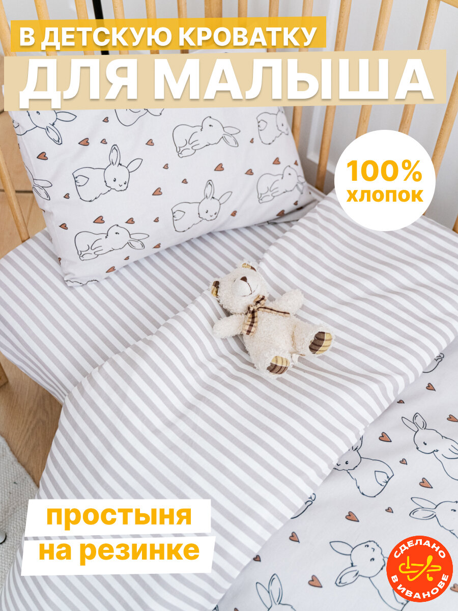 СохранитьДетское постельное белье в кроватку Зайчата бязь 3 предмета с 1 нав. 40х60 интересное:
