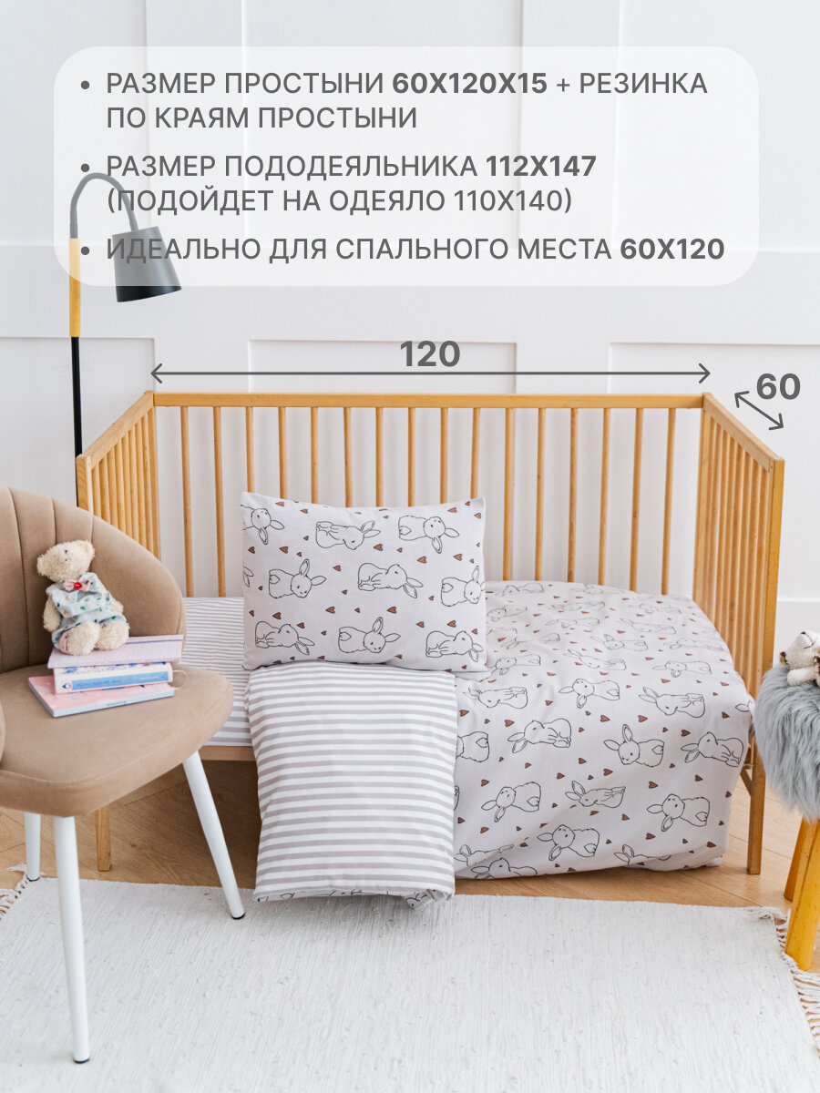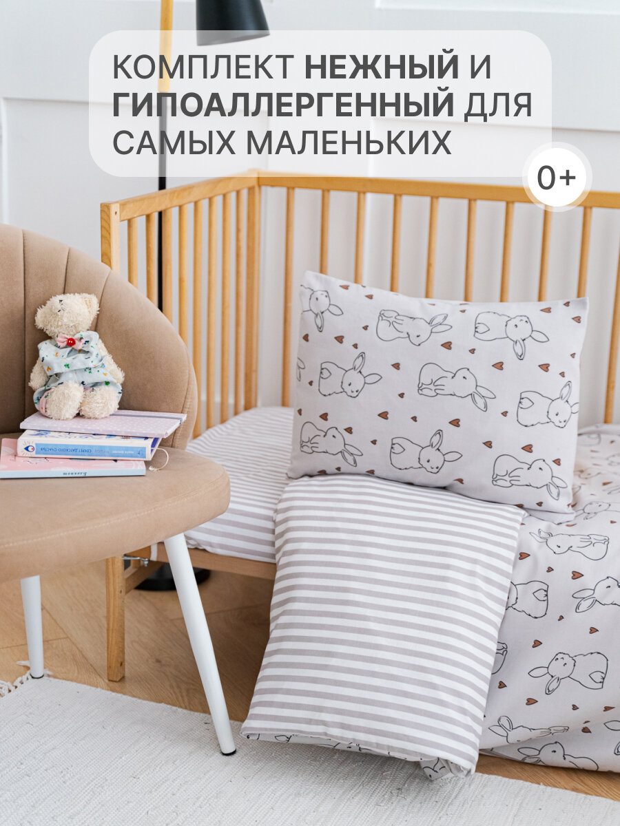 Купить Детское постельное белье в кроватку Зайчата бязь 3 предмета с 1 нав. 40х60