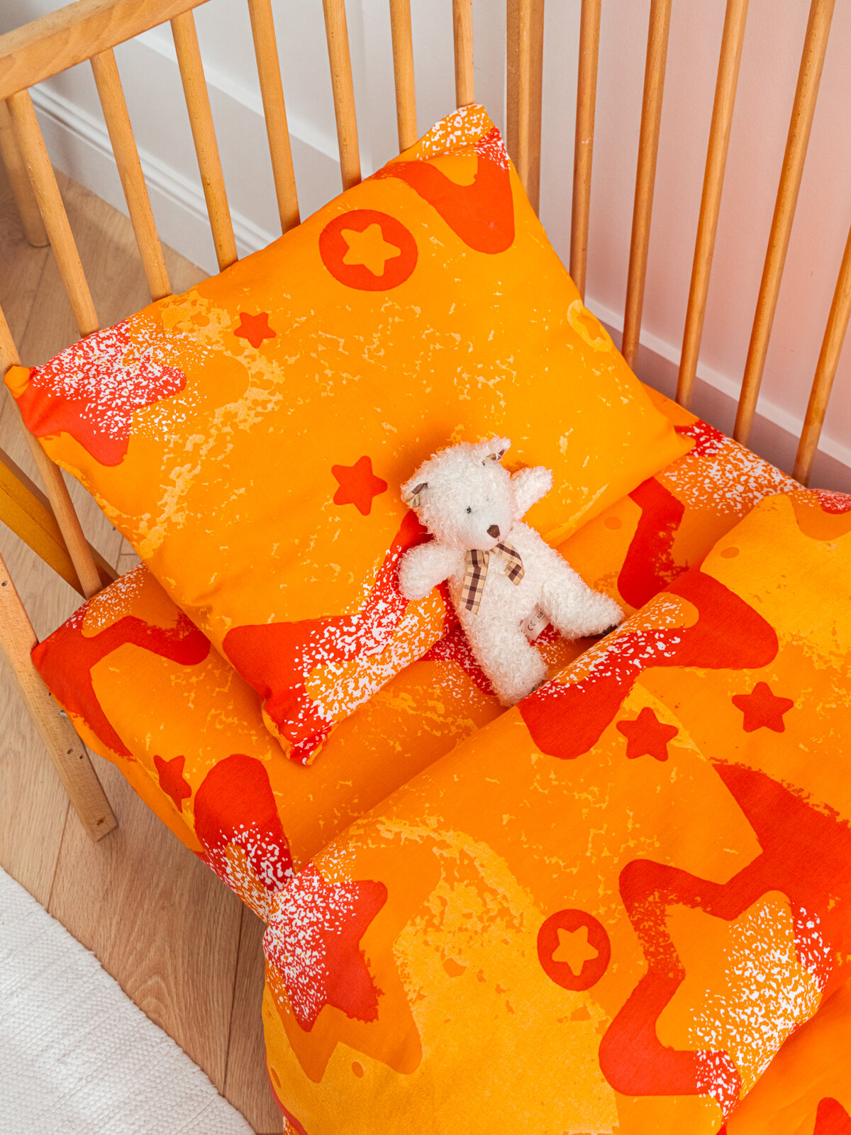Купить Детское постельное белье в кроватку Звезды на оранжевом бязь 3 предмета с 1 нав. 40х60