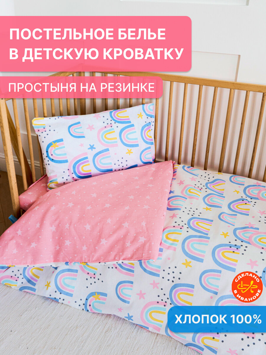 СохранитьДетское постельное белье в кроватку Радуга бязь 3 предмета с 1 нав. 40х60 интересное: