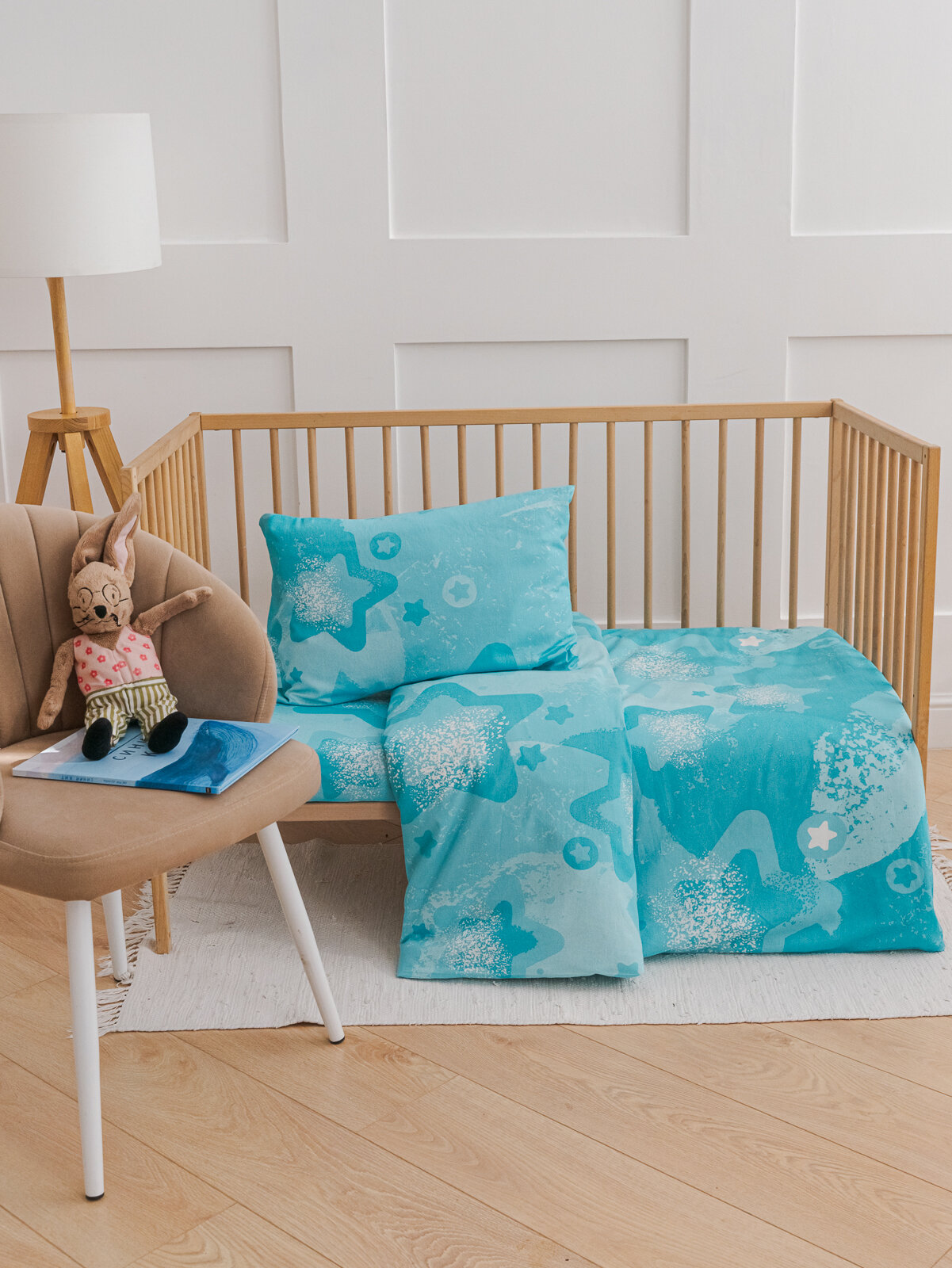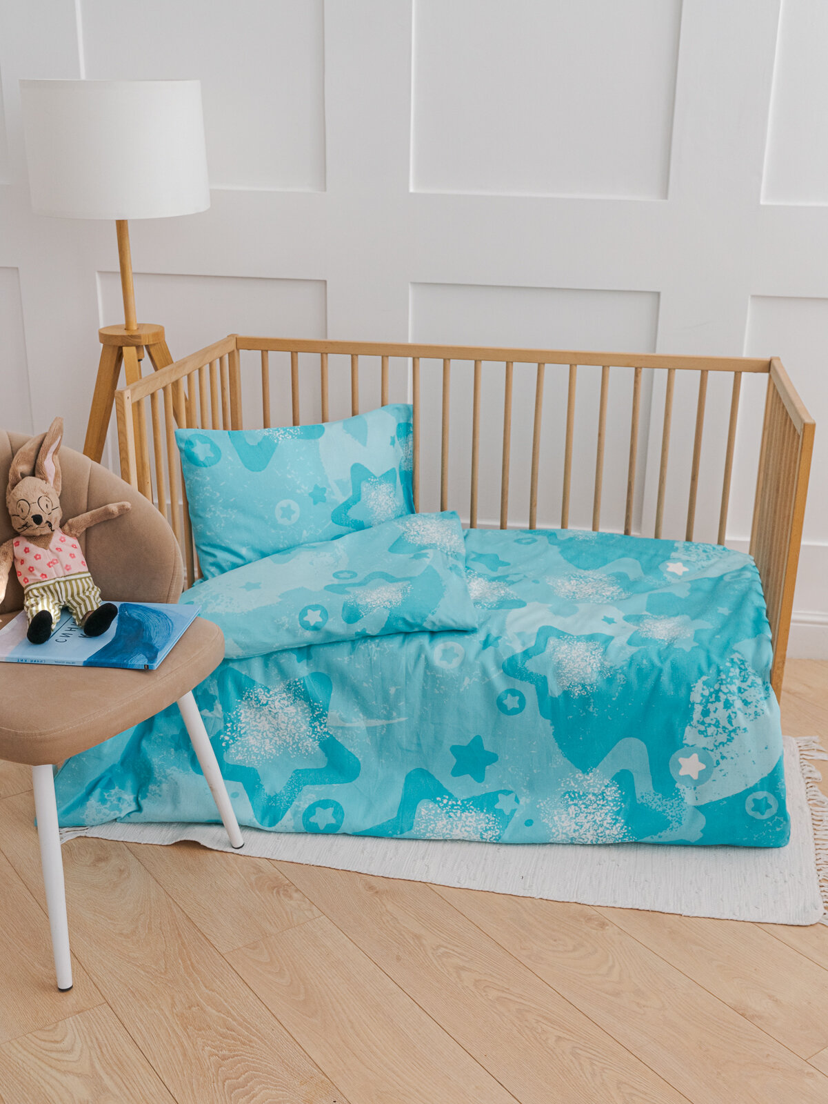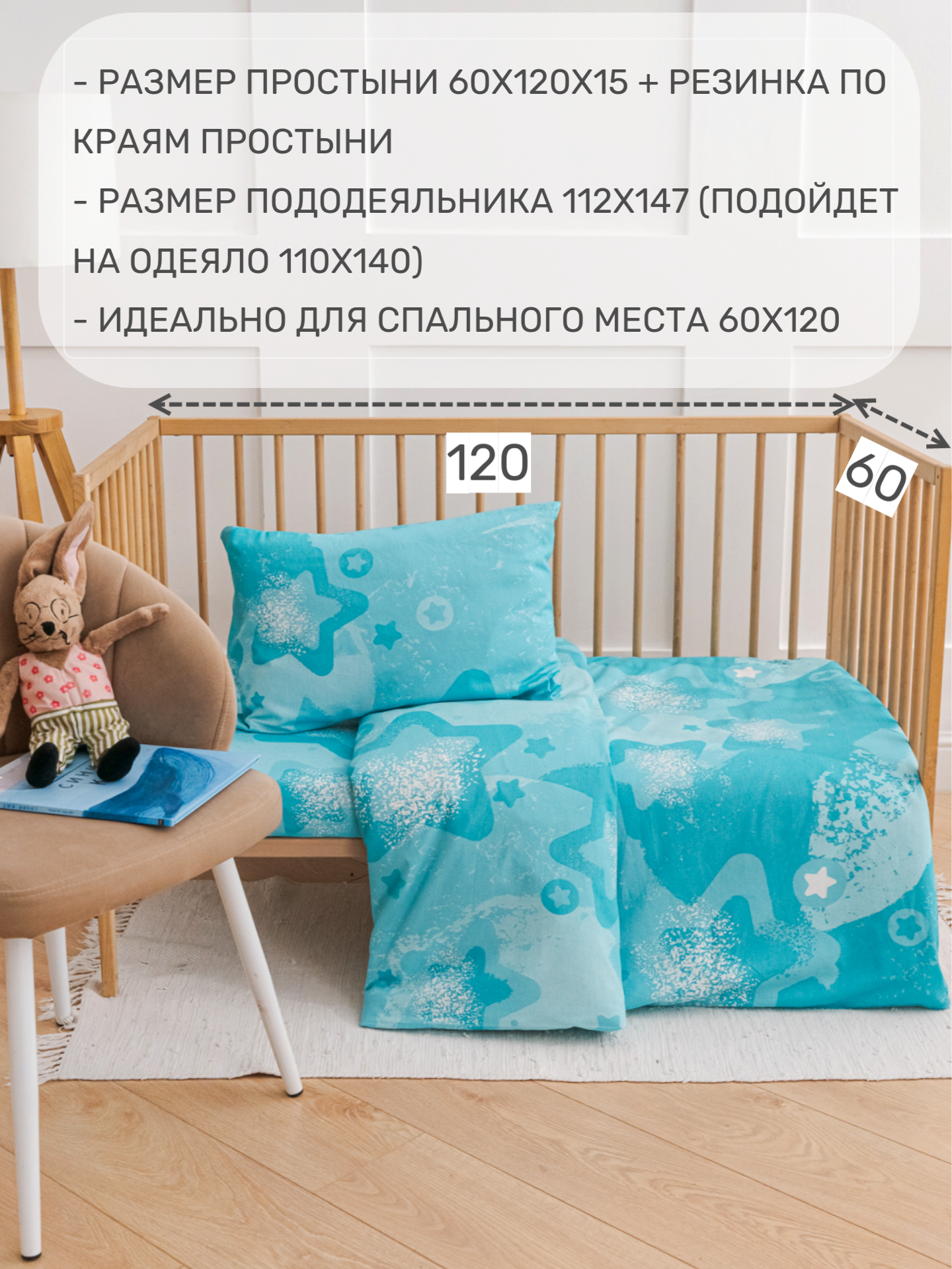СохранитьДетское постельное белье в кроватку Звезды на бирюзовом бязь 3 предмета с 1 нав. 40х60 интересное: