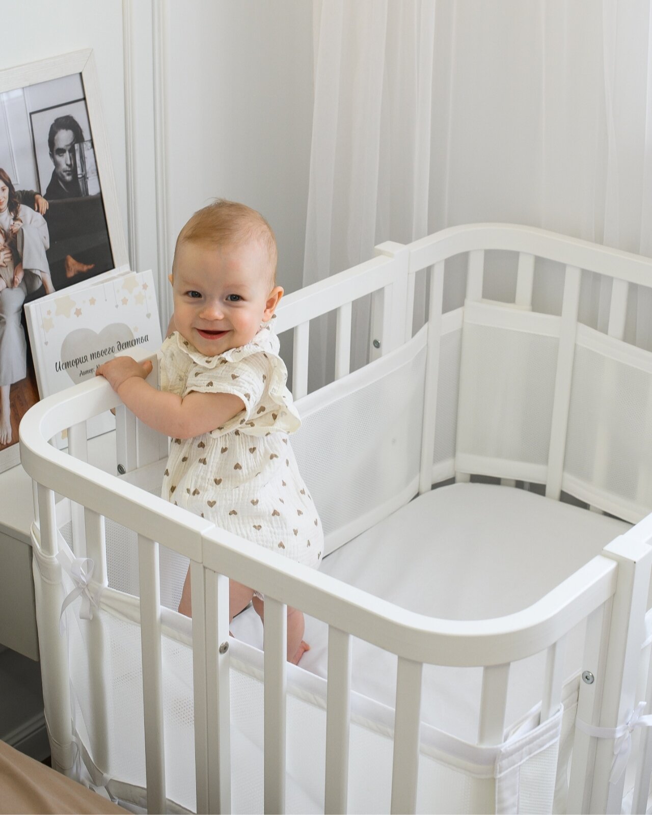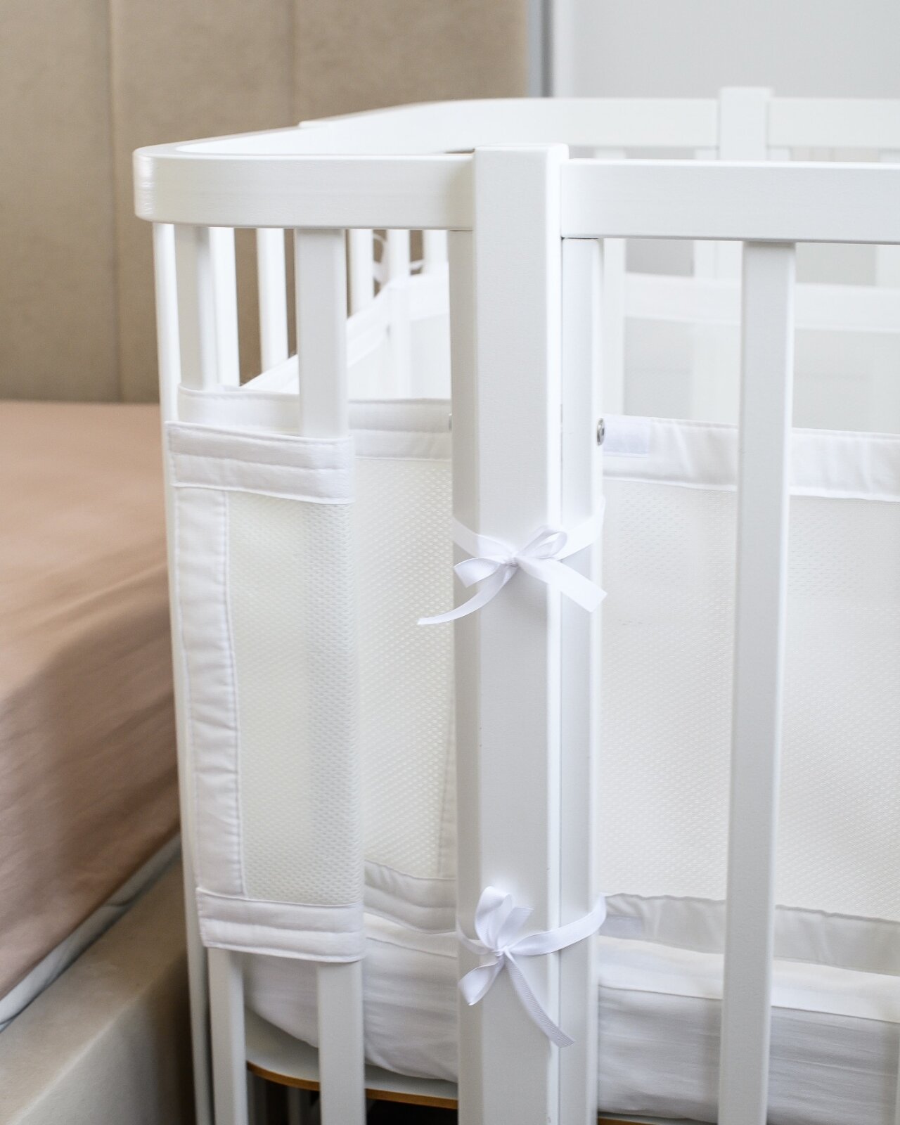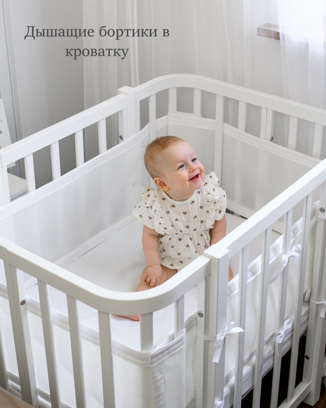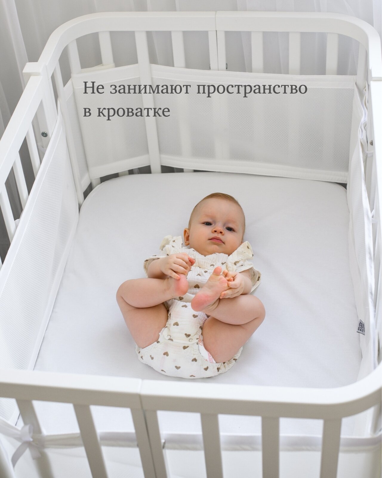 Дышащие плоские бортики в детскую кроватку для новорожденных, белого цвета. интересное: